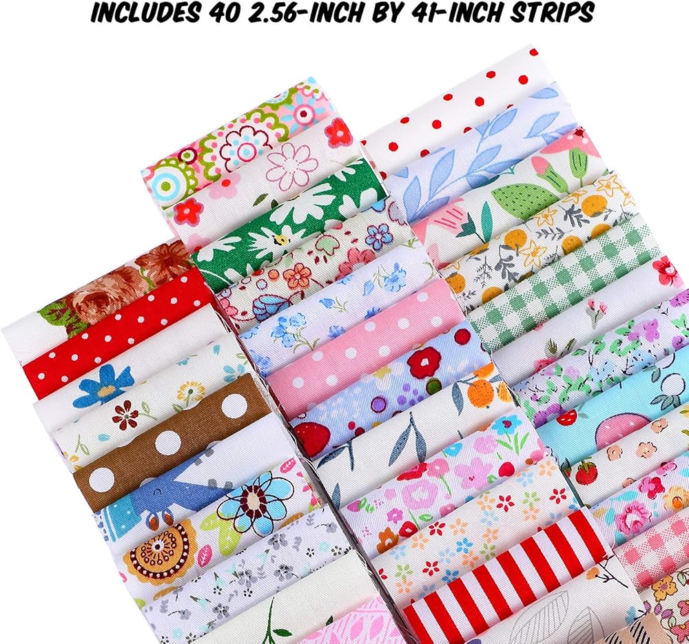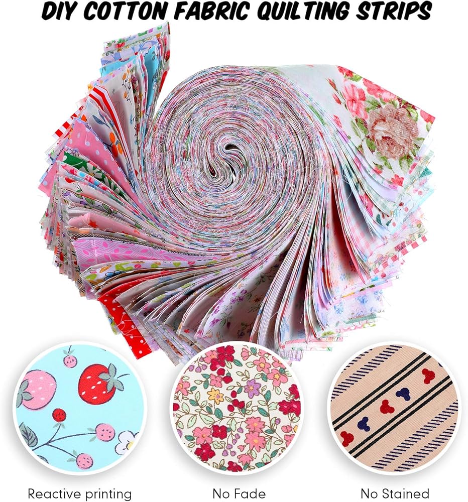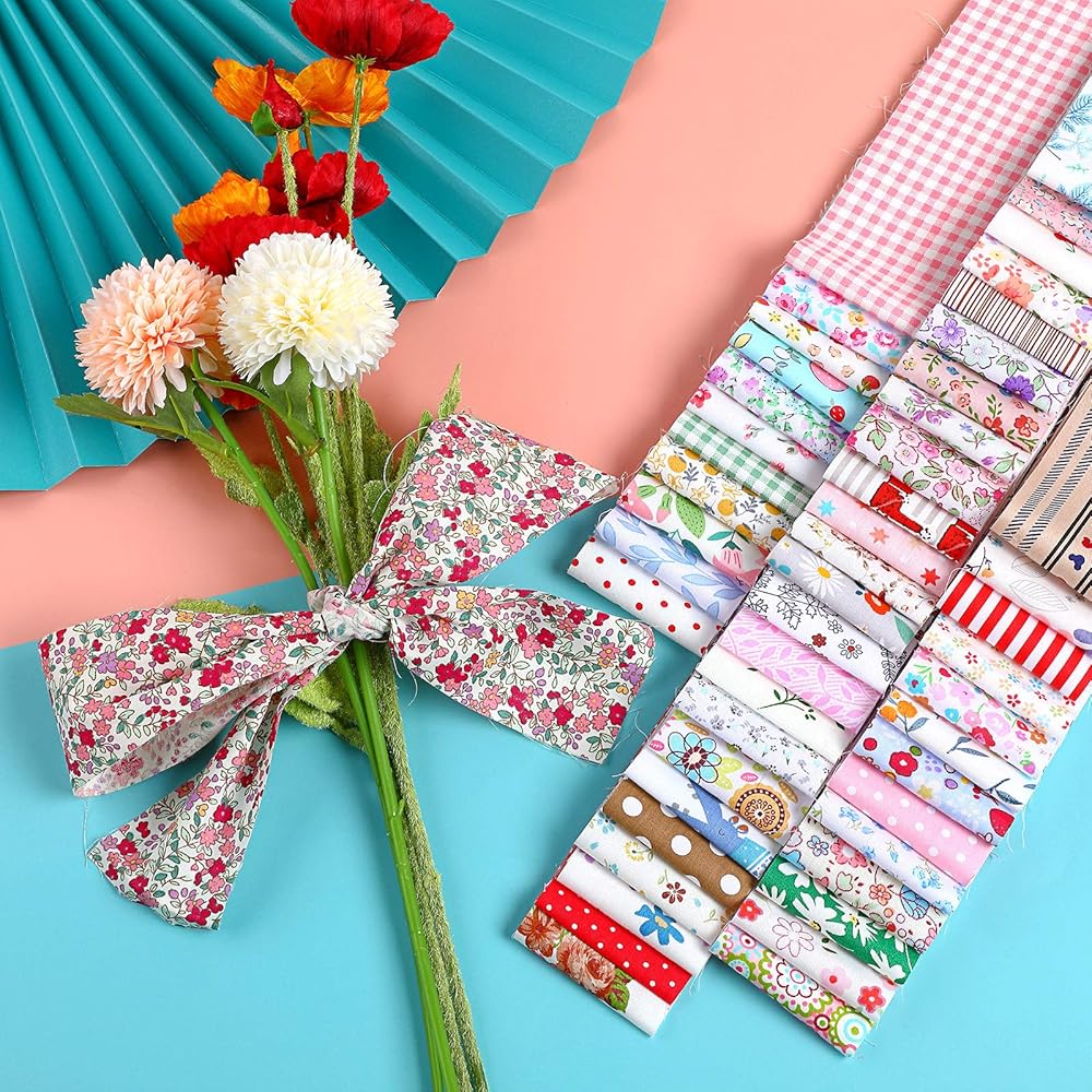 50 قطعة من شرائط النسيج لفة 6.09 سم مجموعة جيلي حزم نسيج شرائط خياطة ملفوفة على شكل زهرة شرائط قماشية مرقعة مسبقًا مع أنماط متنوعة لحياكة الحرف اليدوية