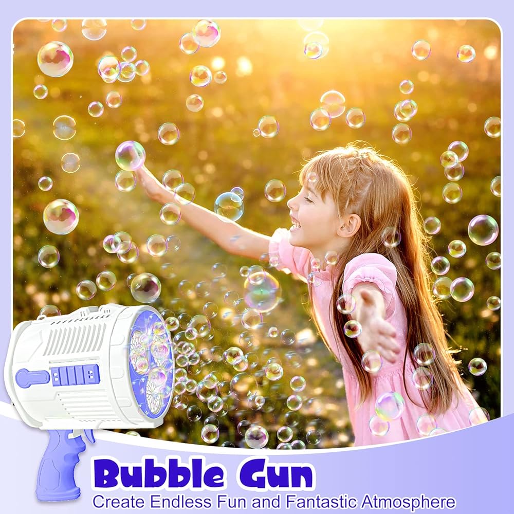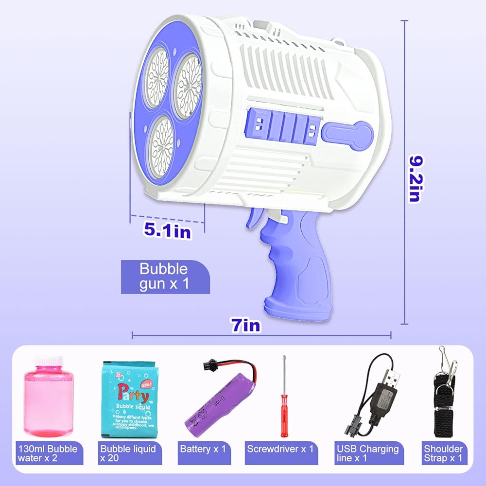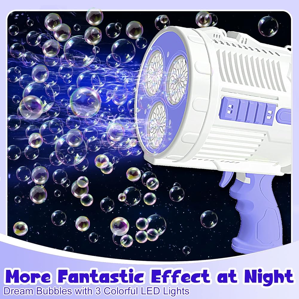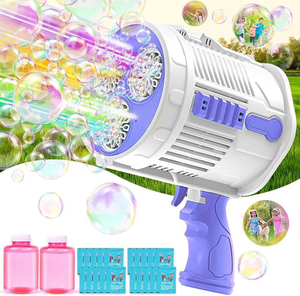 ألعاب فقاعات أوتوماتيكية للأطفال: صانع الفقاعات لوازم حفلات أعياد الميلاد للأطفال من سن 4 إلى 8 سنوات، مدفع رشاش الفقاعات مع أضواء، ألعاب خارجية للحفلات وأعياد الميلاد وحفلات الزفاف وعيد الميلاد - أبيض وأرجواني