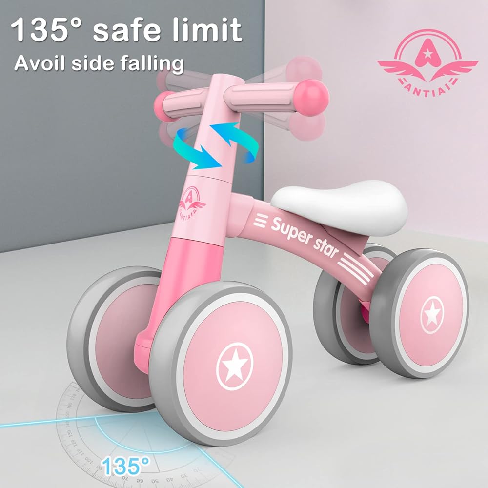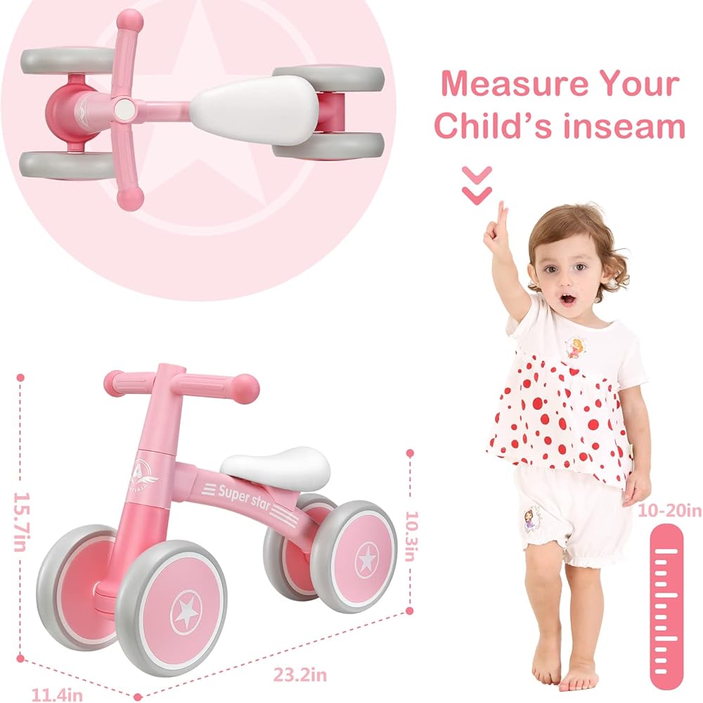 ألعاب دراجة التوازن للأطفال لصبي يبلغ من العمر سنة واحدة، ركوب الدراجة للأطفال الصغار لمدة 12-36 شهرًا، هدية عيد الميلاد الأول للأولاد والبنات، 4 عجلات، مقعد قابل للتعديل