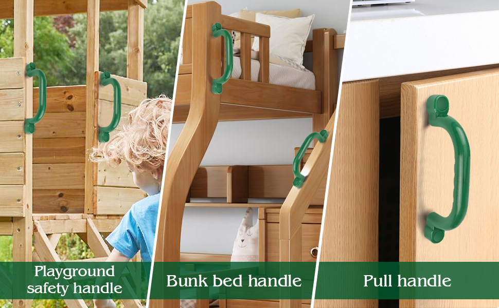 استخدام واسع: تساعد مقابض الأمان في ساحة اللعب على الحفاظ على سلامة الأطفال أثناء اللعب والتسلق وممارسة التمارين الرياضية الرائعة! فتحات الأصابع، تصميم مضاد للانزلاق يمكن أن يكون قبضة آمنة للأيدي الصغيرة. يمكن تركيبها على السلم أو الجدار الصخري أو نقاط الوصول إلى الجبال أو إطارات التسلق أو بيوت الأشجار أو بيوت اللعب أو السياج أو بالداخل على سرير بطابقين.