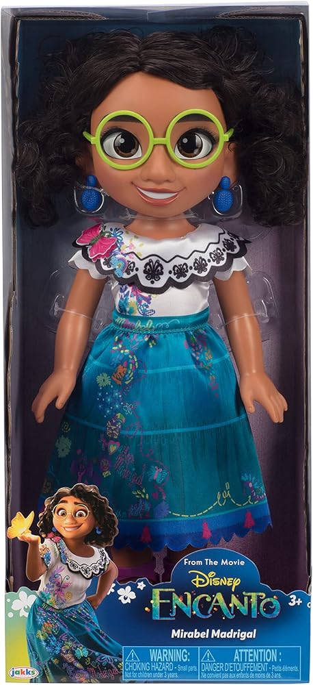 تحكي الميزة الستين لاستوديو الرسوم المتحركة والت ديزني انكانتو، قصة عائلة غير عادية، مادريغالز، الذين يعيشون مختبئين في جبال كولومبيا، في منزل سحري، في مدينة نابضة بالحياة، في مكان رائع وساحر يسمى انكانتو. لقد بارك سحر انكانتو كل طفل في العائلة بهدية فريدة من القوة الفائقة إلى القدرة على شفاء كل طفل باستثناء طفل واحد من ميرابل. ولكن عندما تكتشف أن السحر المحيط بانكانتو في خطر، قررت ميرابيل أنها مادريجال العادية الوحيدة قد تكون الأمل الأخير لعائلتها الاستثنائية. تأتي ميرابيل مادريجال من ديزني انكانتو مرتدية ملابسها وإكسسواراتها المميزة! تمامًا كما هو الحال في الفيلم، يتميز فستان ميرابل بياقة صدفية جميلة وأكمام مع تصميمات أصلية بنمط تطريز. تتميز تنورتها الطويلة باللون الأزرق المخضر بأيقونات وأنماط ملونة مستوحاة من هدايا عائلتها السحرية، تمامًا كما في الفيلم! انظر عن كثب إلى التصميمات، وستجد اسم ميرابيل مطبوعًا على تنورتها، تمامًا مثل فستانها في انكانتو! نظارات خضراء زاهية وحذاء اسبادريل أرجواني يكمل مظهرها الكلاسيكي. مع صديقك الجديد ميرابيل مادريغال، يمكنك التظاهر بالذهاب في مغامراتك السحرية الخاصة!
