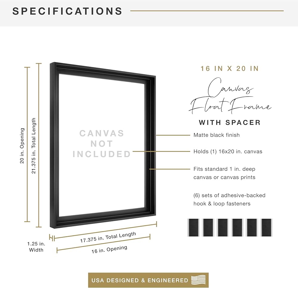 Create and Display Your Masterpiece: Our floating frame for canvas art kit includes a cooresponding size of stretched canvas making it easy to create and display your canvas art. The frame has a paper wrap walnut woodgrain finish that complements any decor style