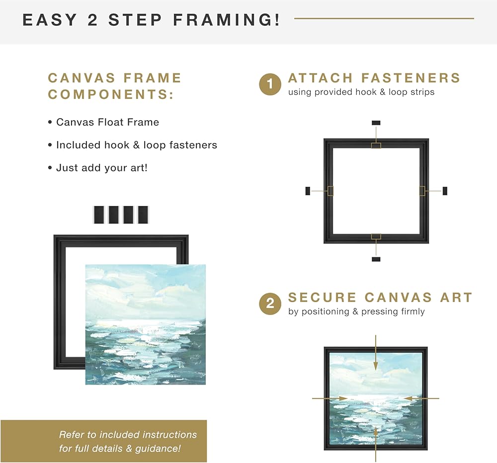Easy to Use Wall Frames for Canvas Art: No tools are needed to easily change artwork; This canvas frame kit includes one stretched canvas and adhesive-back hook and loop fasteners to quickly attach your artwork