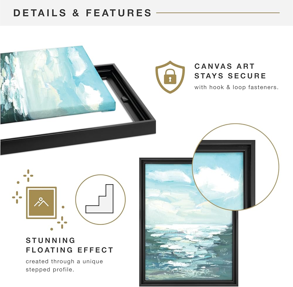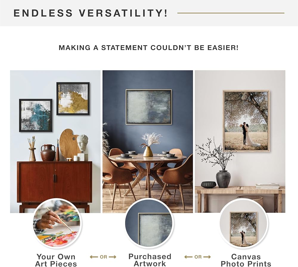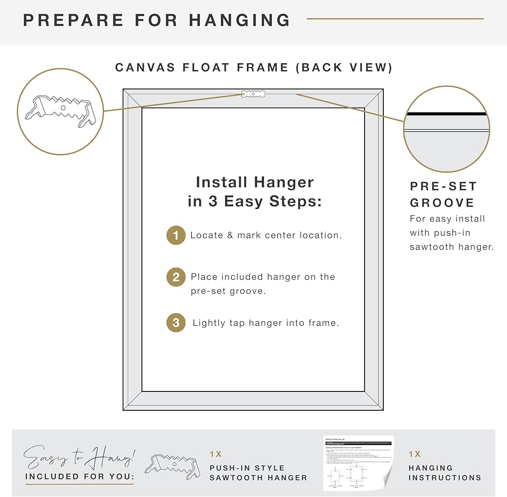 Easy to Hang: Our hanging picture frames for canvas paintings come with pre-attached sawtooth hangers for vertical or horizontal wall hanging, so you can display your art elegantly in any orientation