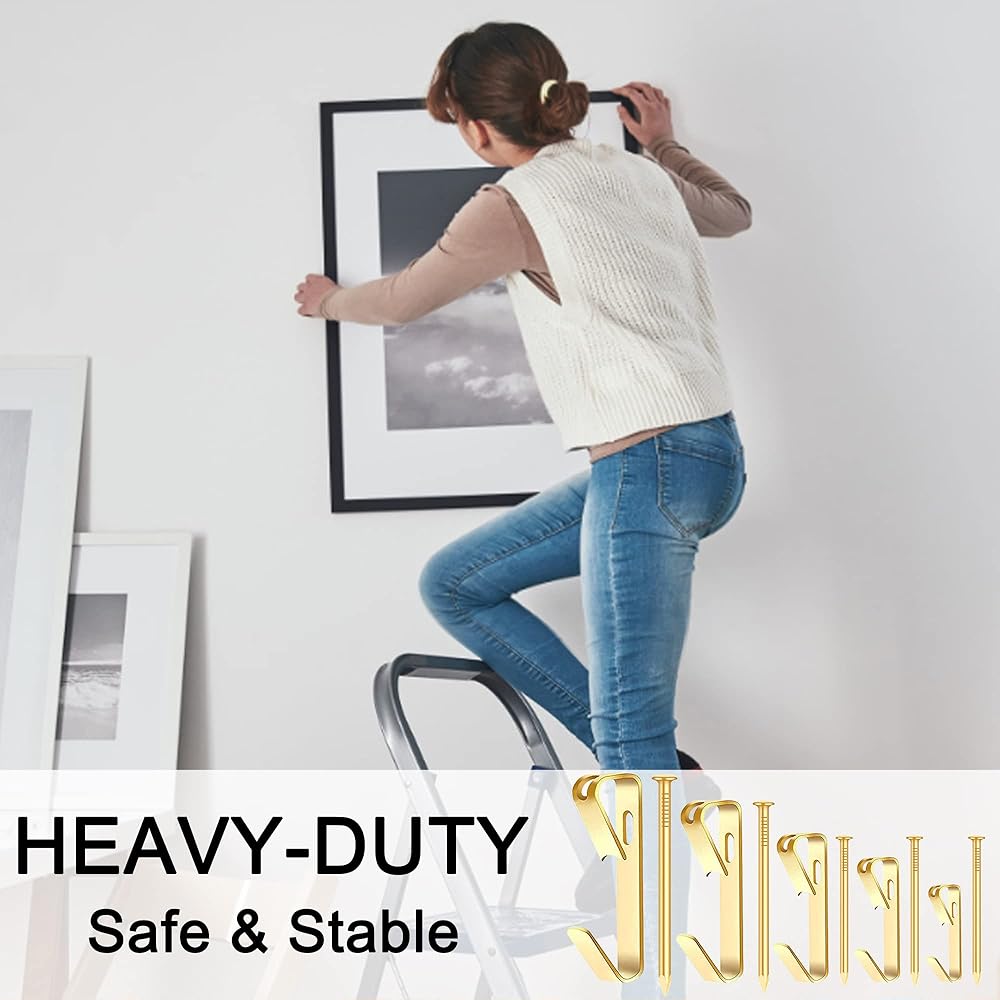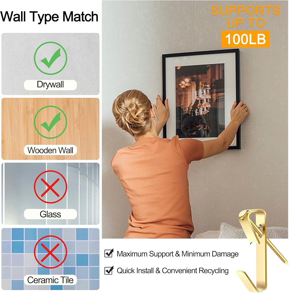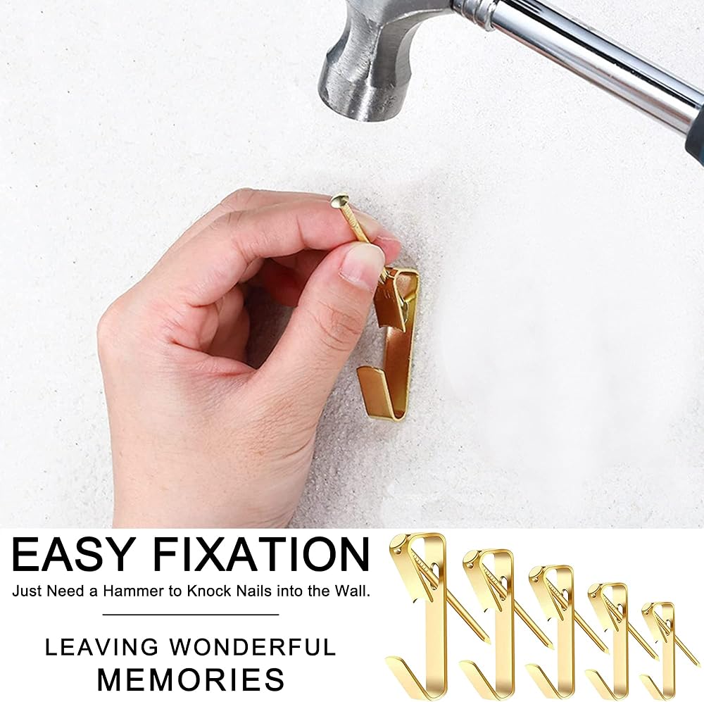 • ⚒️【خامة عالية الجودة】شماعات الصور الخاصة بنا مصنوعة من مواد عالية الجودة وتصميمها الخاص من الفولاذ الصلب والأظافر الزاوية والخطافات المثقوبة يجعلها متينة وقوية. ستعمل بشكل مثالي إذا كانت على جدار صلب بما فيه الكفاية. سيكون لديك مجموعة من خطافات تعليق الصور التي ستعمل لفترة طويلة!