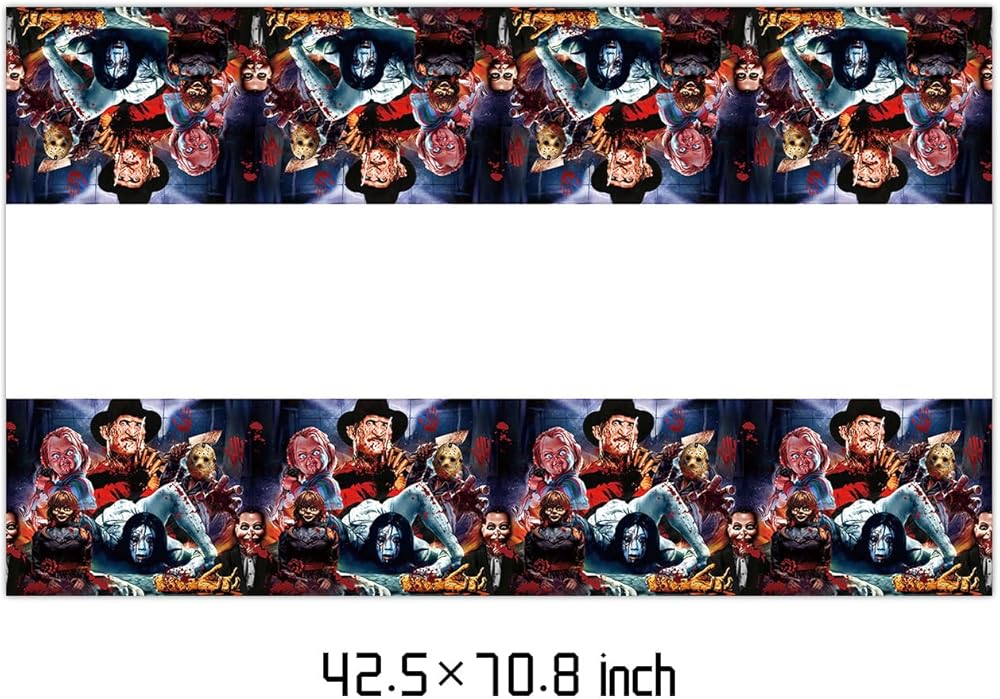 2 حزمة من مفارش المائدة من فيلم الرعب، مفرش طاولة للاستعمال مرة واحدة، لوازم حفلات أعياد الميلاد وديكورات للأطفال الصبيان، طاولات أفلام الرعب مقاس 70 بوصة × 42 بوصة