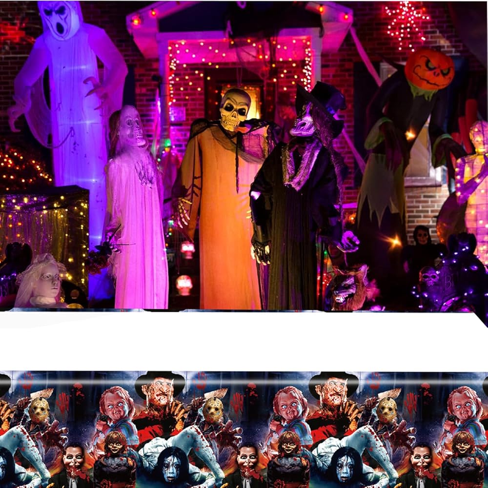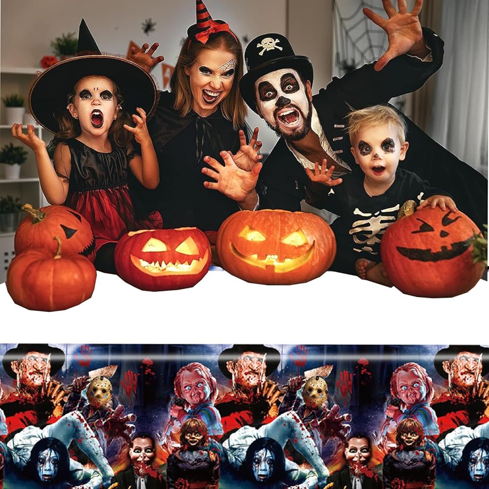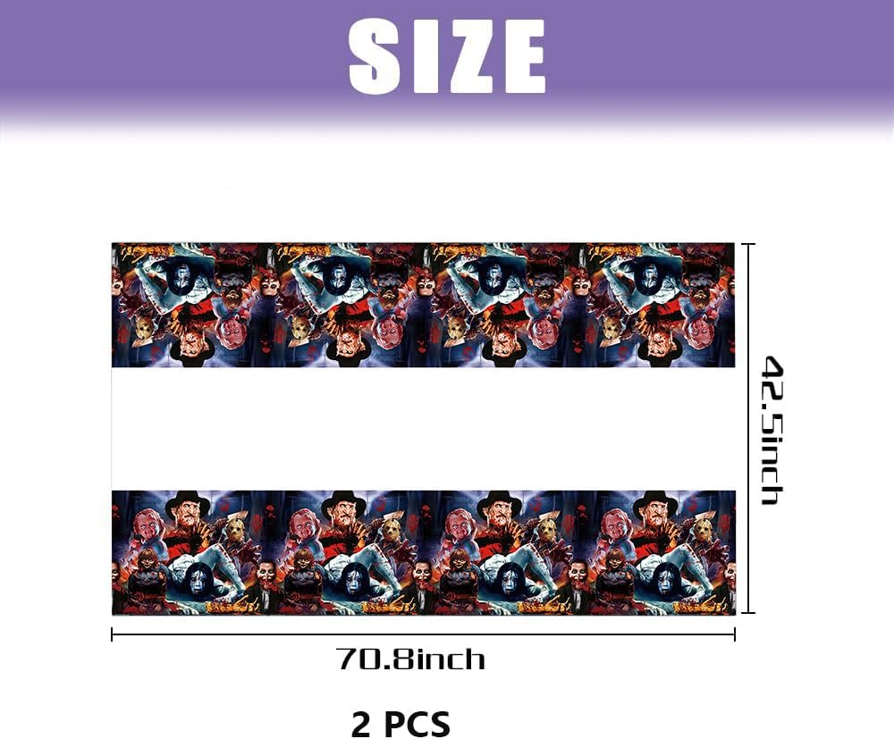 2Pack Horror Movie Tablecloth Disposable Tablecover Birthday Party Supplies and Decorations for Kid Boy Baby Shower Horror MovieTables 70"X42"