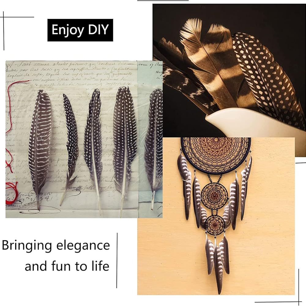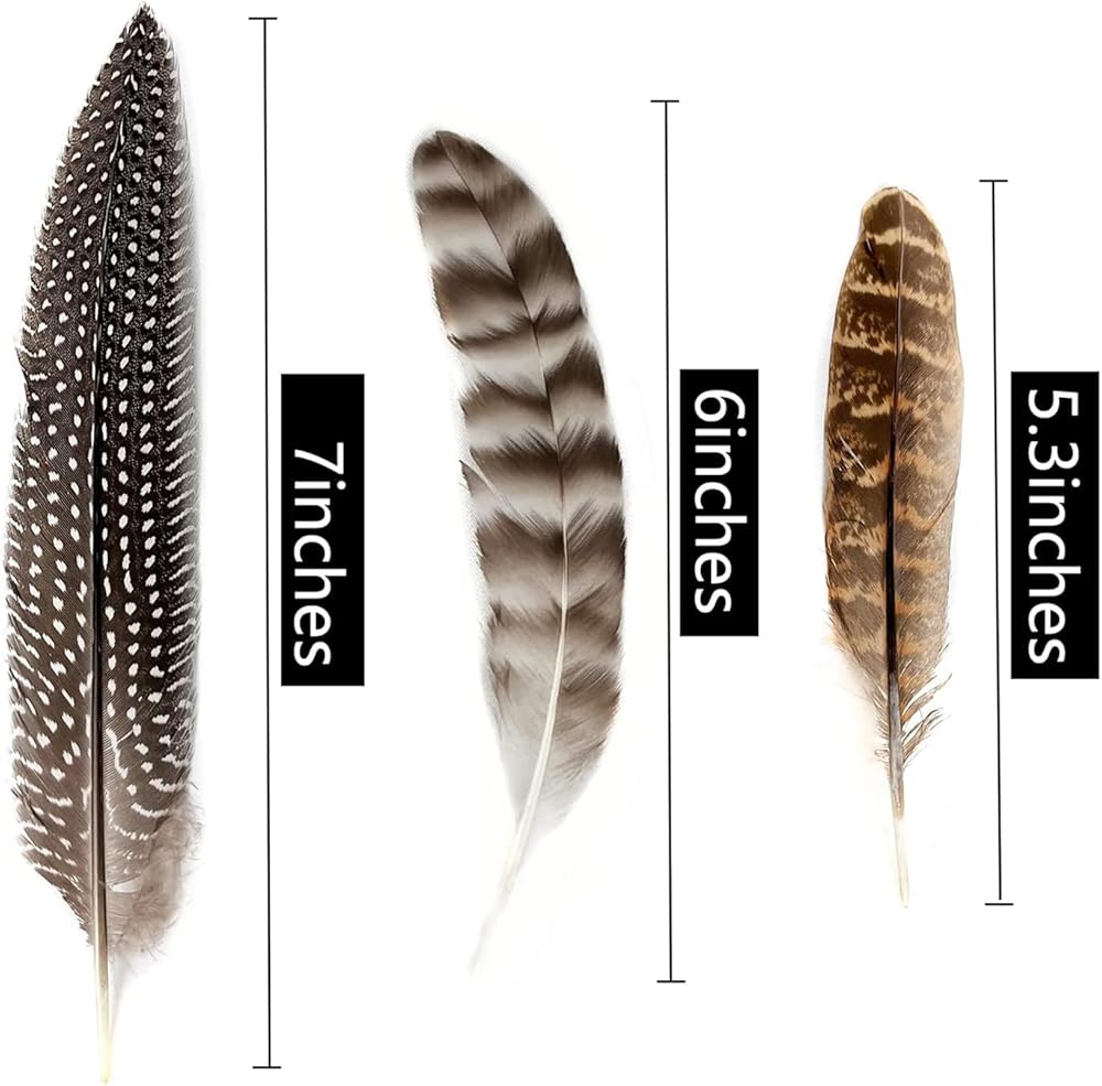 • حزمة قيمة: سوف تحصل على 30 ريشًا متنوعًا، مع ما مجموعه ثلاثة أنواع مختلفة من الريش المزخرف، بما في ذلك 10 قطع من ريش أجنحة الطيور الغينية، و10 قطع من ريش الدجاج المقصب، و10 قطع من ريش الديك الرومي الطبيعي.