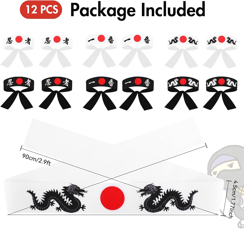 12 قطعة عصابة رأس الساموراي اليابانية للرجال سوشي شيف باندانا النينجا المحارب الكاراتيه عقال للرياضة زي أغطية الرأس لوازم المطبخ