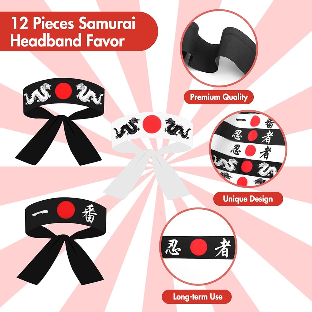 1.Japanese Headbands Bulk: These Samurai Headbands have a unique design concept, symbolizing those who are unyielding and firmly chasing their dreams, and will be an inspirational headband and an excellent supplement to the karate theme party.