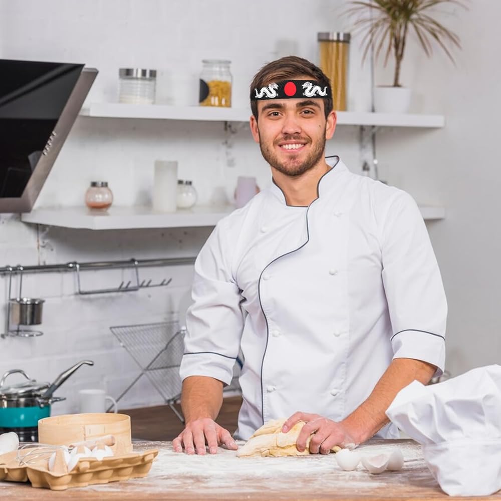 2.Perfect Size: Our sushi chef bandana size is about 35.4x1.77 inches/90x4.5 cm. You will receive 12 pieces karate headbands, printed with 6 different designs. The black and white color can be selected for you to satisfy you daily needs and replacement.