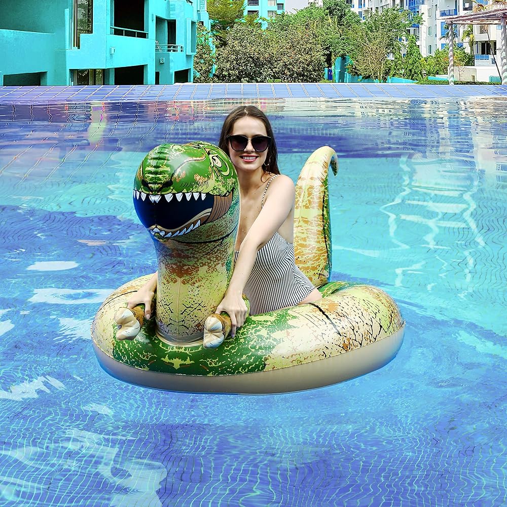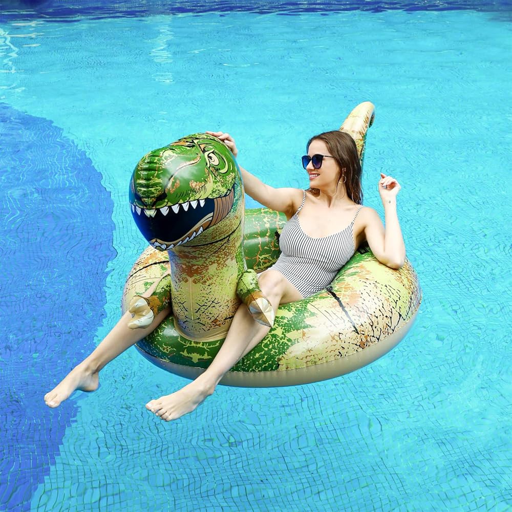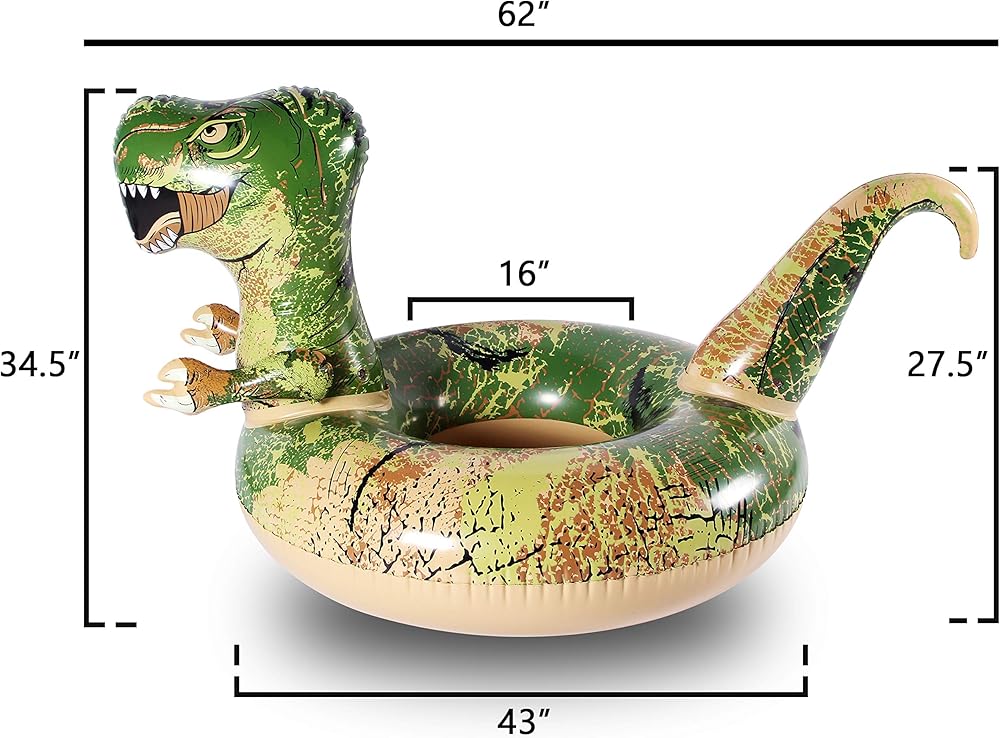 مظهر حيوي: يأتي عوامة حمام السباحة القابلة للنفخ بمظهر ديناصور نابض بالحياة. تختلف تغطية الديناصورات الملونة الفريدة عن الكثير من المسابقات. اركبها أو يمكنك الاستلقاء على الديناصورات. نزواتها تتوافق مع السطح الذي يمكن تخيله.