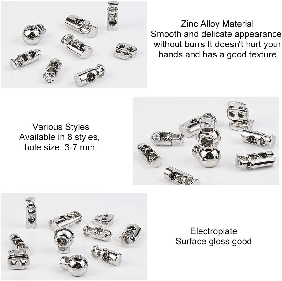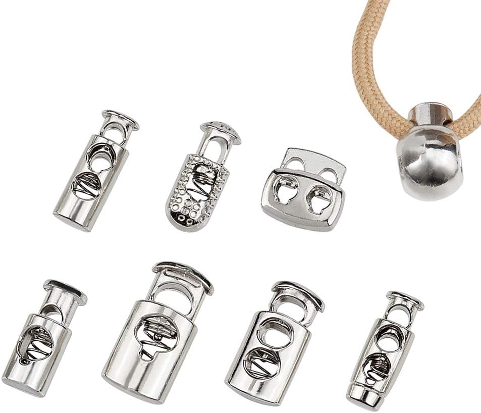 PandaHall 64 قطعة 8 ستايلز سبيكة معدنية زنبركية قفل الحبل تبديل سدادة تبديل سدادة للأربطة