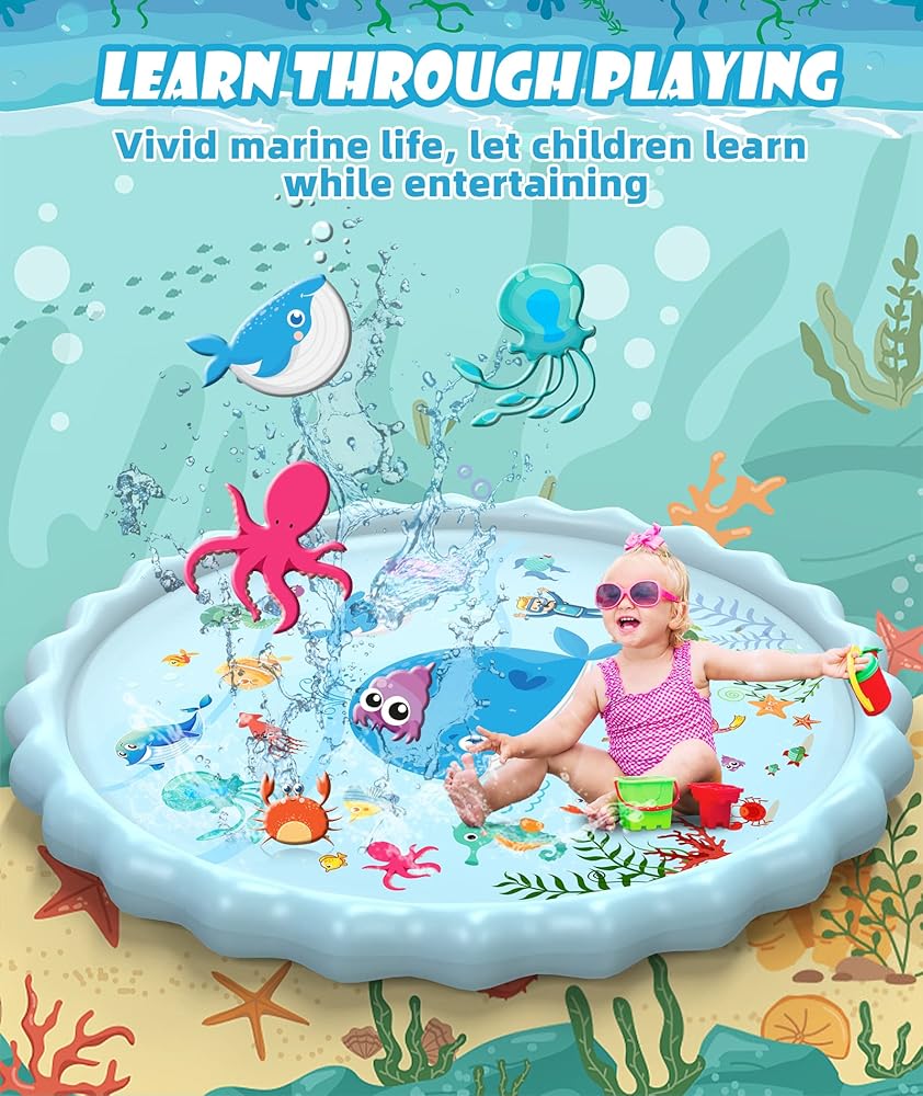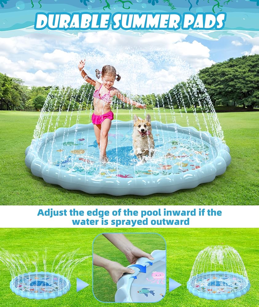 👍أكبر لمزيد من المرح - تتميز سجادة اللعب Sprinkler المطورة بقطر أكبر للأطفال، مما يمنح الأطفال مساحة أكبر للعب وكبيرة بما يكفي لاستضافة العائلة والأصدقاء، وليس اللعب بمفردهم.