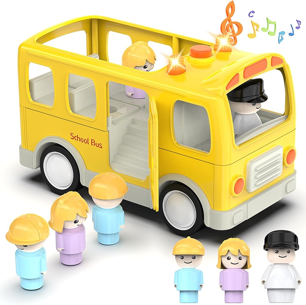 ألعاب حافلة مدرسية من Veslier مع 5 شخصيات لعب للأطفال الصغار، لعبة سيارة للأطفال مع أضواء وأصوات، شاحنة مع وظيفة فتح الباب وعلامة إيقاف، هدية عيد ميلاد للأولاد بعمر 18 شهرًا + 2 3 4 5 سنوات.