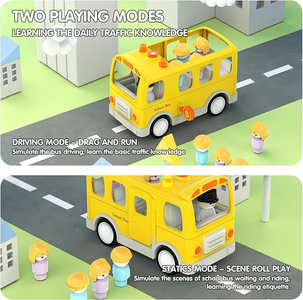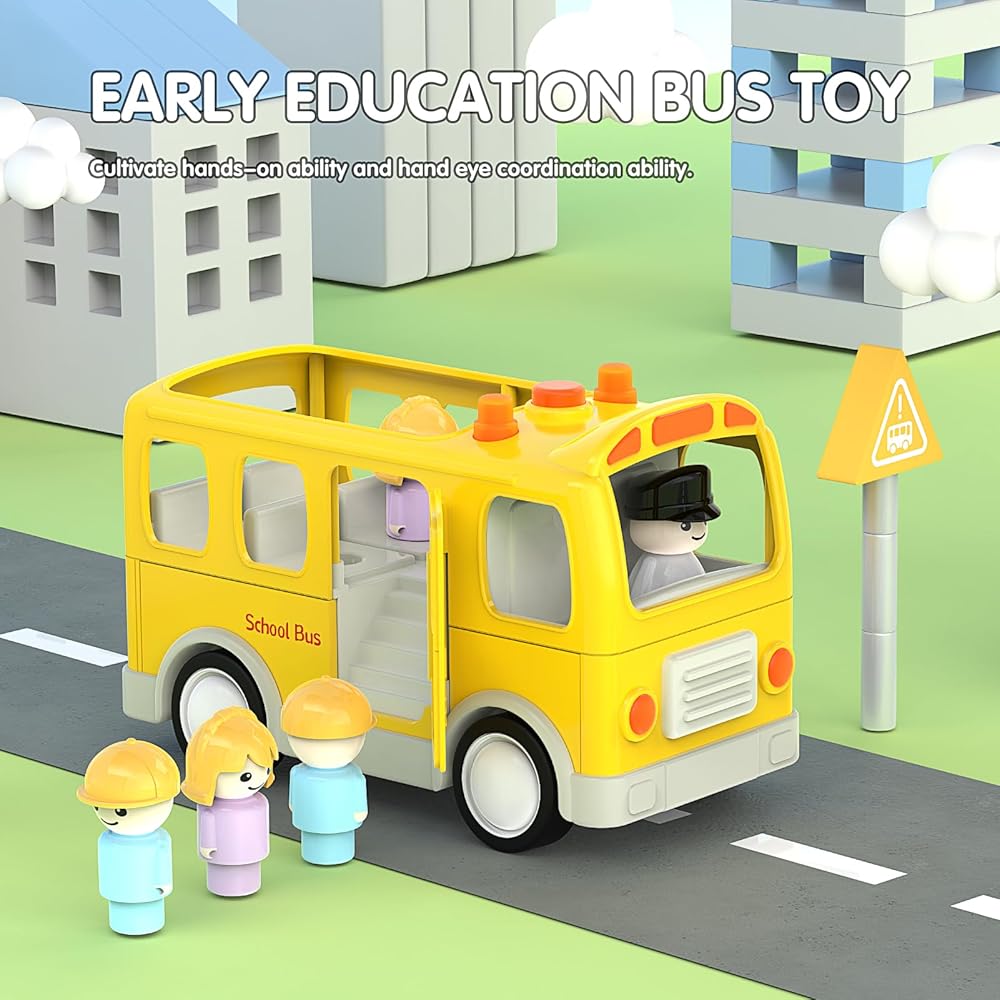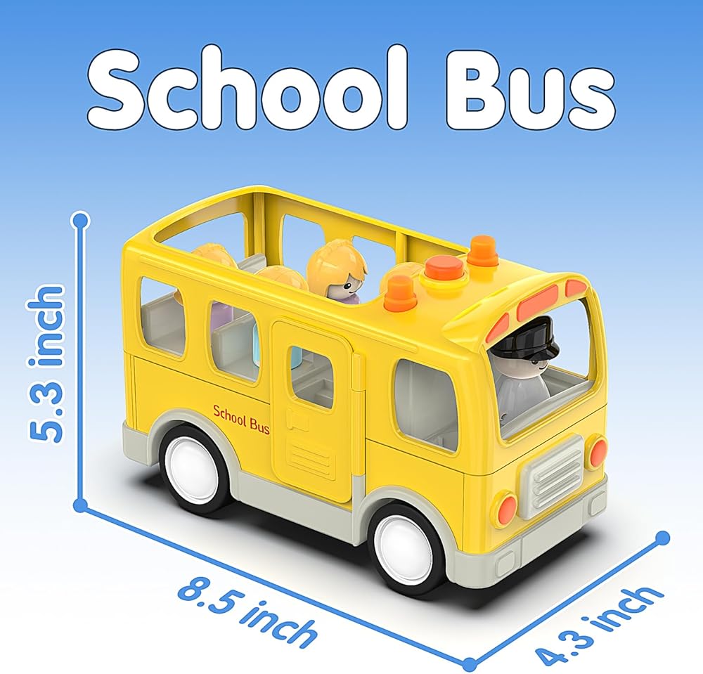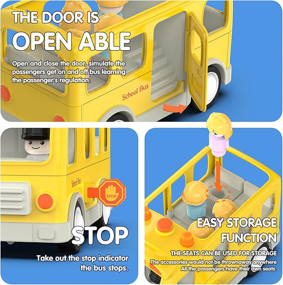 لعبة حافلة مدرسية متعددة الوظائف - تتضمن لعبة حافلة المدرسة مركبة و5 أشكال (سائق حافلة و4 تماثيل صغيرة للركاب)، جميعها بأحجام مناسبة للأيدي الصغيرة للإمساك بها والتحرك، مما يساعد على تقوية المهارات الحركية الدقيقة.