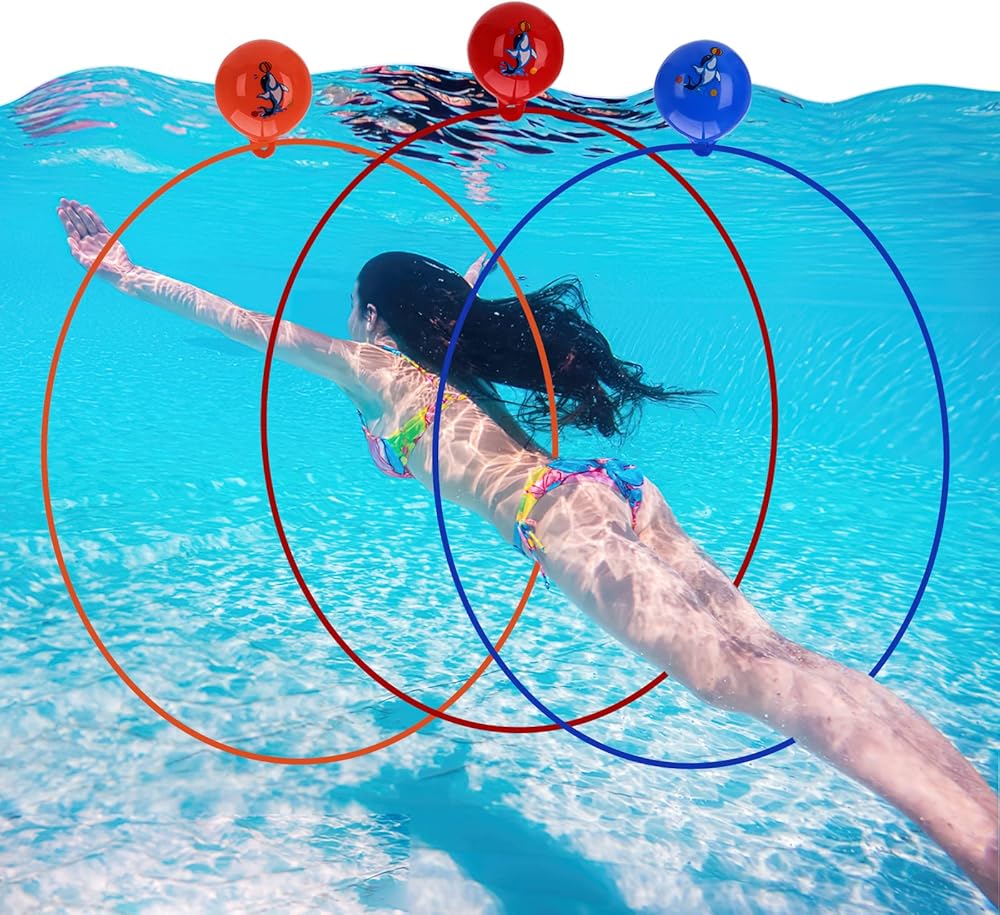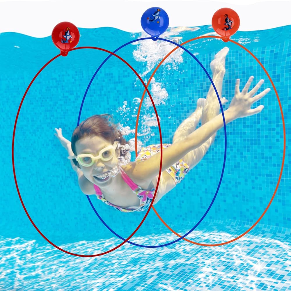 الرياضات المائية الصيفية الممتعة - بعد أن يصبح كل شيء جاهزًا، يمكنك المرور عبر حلقات البلياردو. السباحة تحت الماء للتدريب على السباحة، يتعلم الأطفال السباحة والألعاب تحت الماء وما إلى ذلك. في هذا الصيف الحار، أسرعي واللعب مع أصدقائك! رائعة لكل من الأطفال والمراهقين والبالغين. استمتع بصيفك مع هذه الحلقات للسباحة.