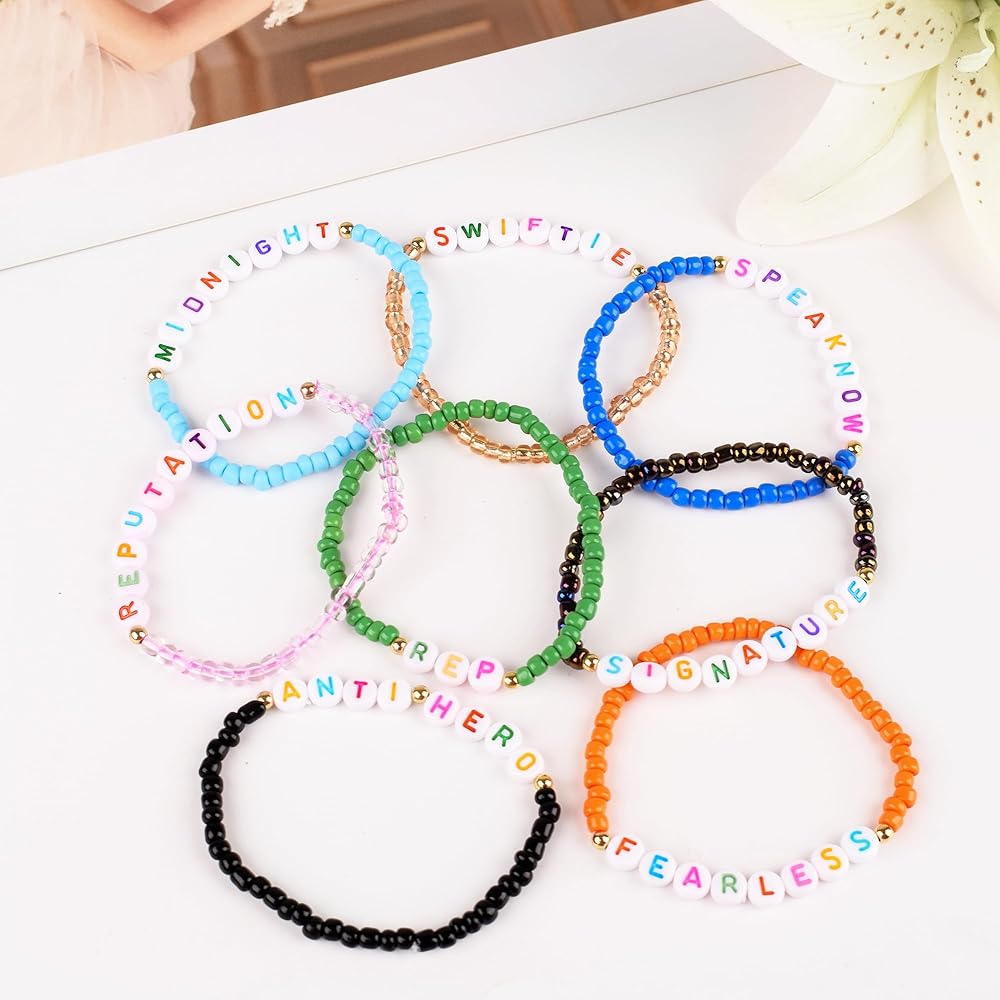 أساور الصداقة: يمكنك مشاركتها مع أصدقائك والذهاب إلى حفلة TS معًا، كل سوار من أساور تايلور مستوحى من عصر مختلف، مما يمثل رحلة المعجبين.