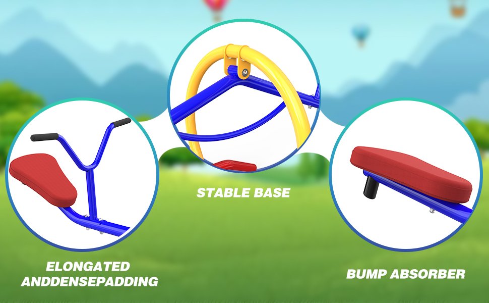 ★تصميم ممتص للصدمات أكثر أمانًا: تم تعزيز مجموعة الملعب هذه بممتصات الصدمات الكبيرة التي تقلل التأثير بشكل كبير، مما يجعلها أكثر أمانًا من المناشير القياسية في الحديقة. كما أن ممتصات الصدمات تجعل اللعب أسهل وأكثر راحة. تأتي مع مصدات مطاطية مثبتة أسفل وسادات المقعد. يجب أن تمتص هذه المصدات التأثير.