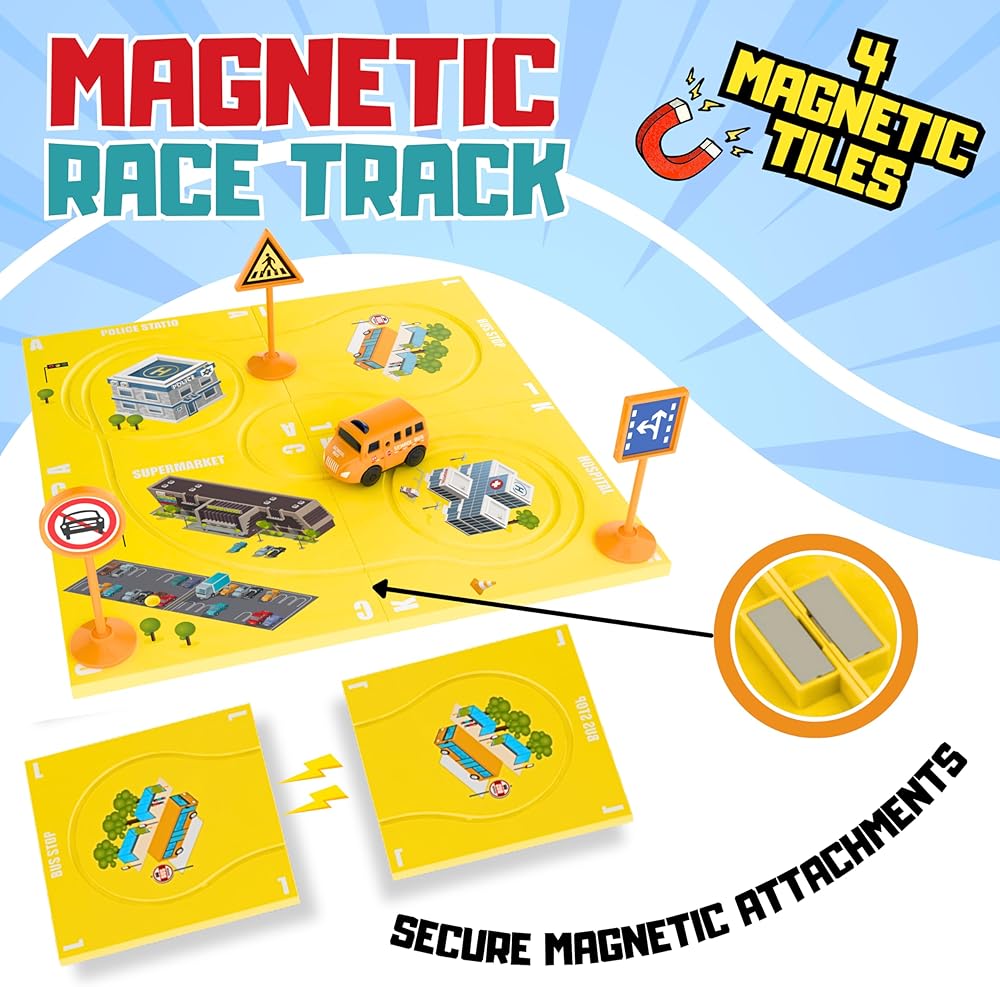 إبداع لا حدود له في المسار: شجع خيال طفلك على التحليق مع مجموعة مسارات السباق المغناطيسية الخاصة بنا. مع مجموعة متنوعة من 4 قطع من قطع الألغاز الصفراء، بالإضافة إلى ملحقات الطريق، تتاح للأطفال الفرصة لتصميم مسار جديد في كل مرة يلعبون فيها. مجموعة مسارات السباق الديناميكية والمتغيرة لا تثير الإبداع فحسب، بل تتحدى الأطفال أيضًا للتفكير بشكل منطقي، مما يعزز وعيهم المكاني ومهارات حل المشكلات.