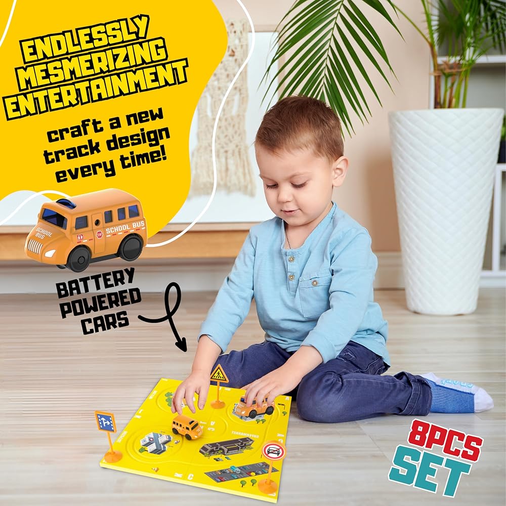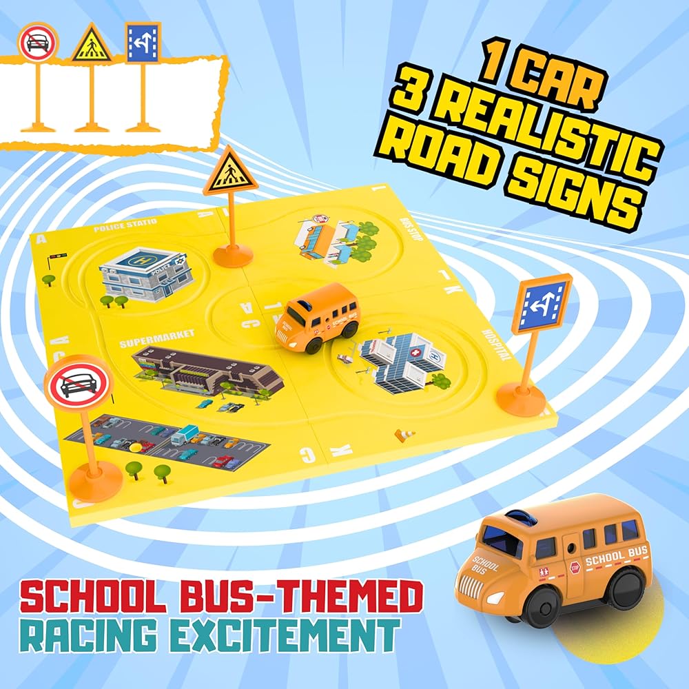 إثارة السباق تحت عنوان حافلة المدرسة: مجموعتنا تنبض بالحياة مع سيارة سباق رائعة تعمل بالبطارية لحافلة المدرسة تضيف لمسة مبهجة لألعاب السباق التقليدية. بينما تتنقل هذه السيارات بسلاسة في المسارات المتعرجة، سيتمكن الأطفال من رؤية السبب والنتيجة أثناء السباق من نقطة البداية إلى خط النهاية. هذا المزيج الفريد من ألعاب السباق والبناء هو أمر ترفيهي وتعليمي.