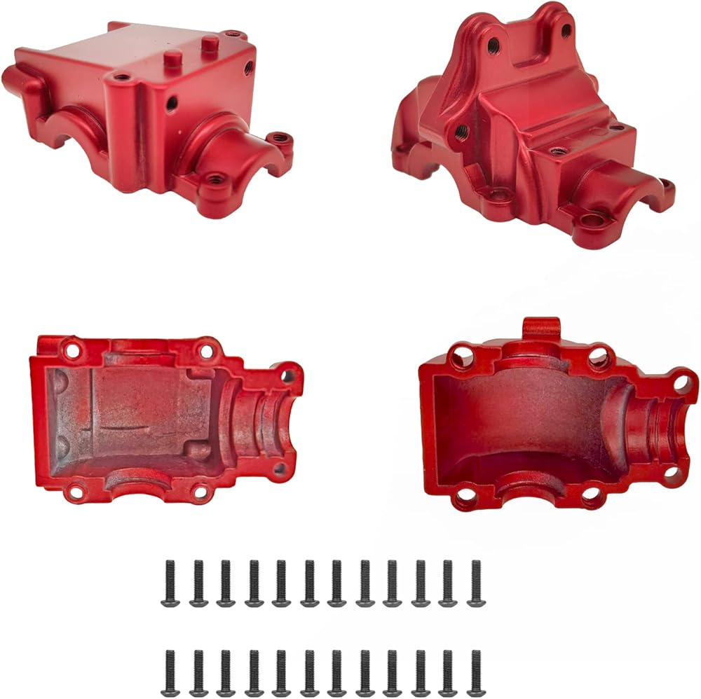 RCMOXETO 144001 RC معدن الإسكان علبة التروس التفاضلية مجموعات حالة الغطاء التفاضلي 2 قطعة لـ Wltoys 144001 أجزاء 124018 124019 ترقية الأجزاء الأمامية والخلفية المساكن التفاضلية غطاء علبة التروس شل 1/14 أحمر