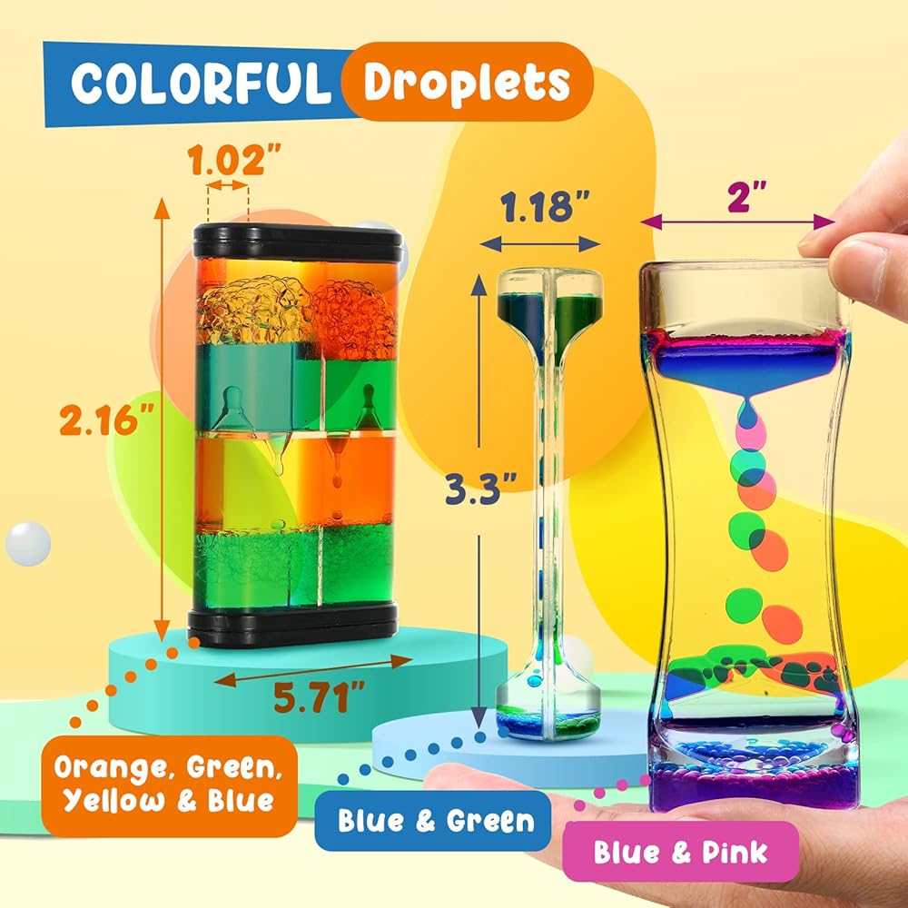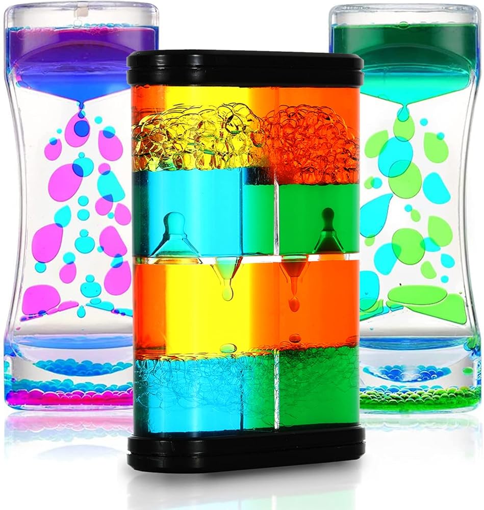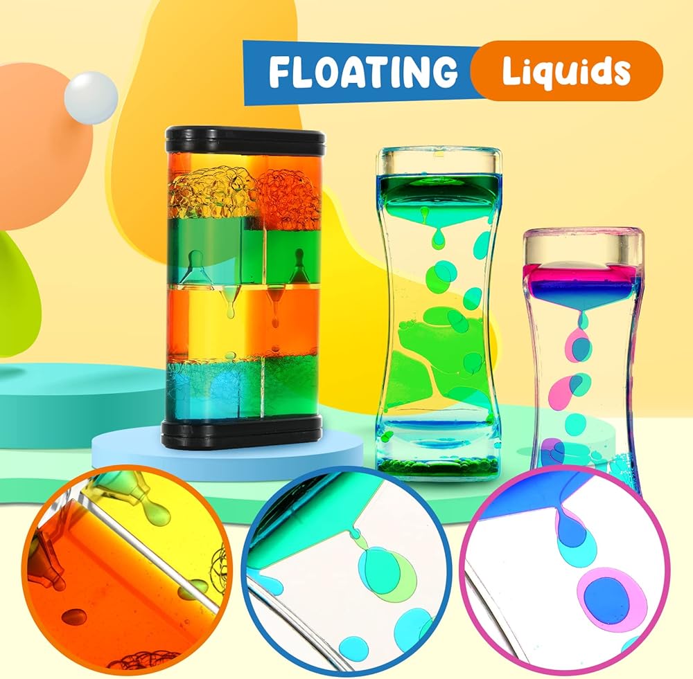 فقاعات الحركة السائلة - مؤقت سائل حسي 3 عبوات، ألعاب حسية للتوحد للأطفال البالغين، لعبة الساعة الرملية الفعالة لتخفيف التوتر، لوازم الزاوية الهادئة، مصباح الحمم البركانية للأطفال، ديكور مكتب المكتب