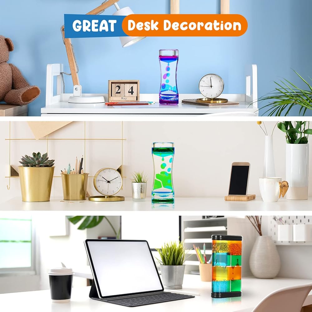 • 🧡مجموعة مؤقت سائل ساحر مكونة من 3 عبوات: 3 أنماط مختلفة من فقاعات الحركة السائلة، ستخفف فقاعات الحركة السائلة المهدئة التوتر بشكل إيجابي وتجعلك تشعر بالاسترخاء. لعبة طاولة متطورة بدون صوت دقات ومؤقت بصري مبتكر للأطفال والكبار.
