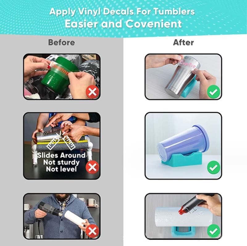 Clever design: Unlike traditional cup holders, this silicone cup holder has two angle modes, including horizontal and inclined positions, providing the best conditions for you to apply decals on the cup. This cup holder suitable for vinyl applications is suitable for most thin straight conical glass cups, bottle type thermos bottles, and glassware. When you stick stickers on the cup, you don't have to worry about the cup rolling. It can save time and energy and is very suitable for craftsmen.