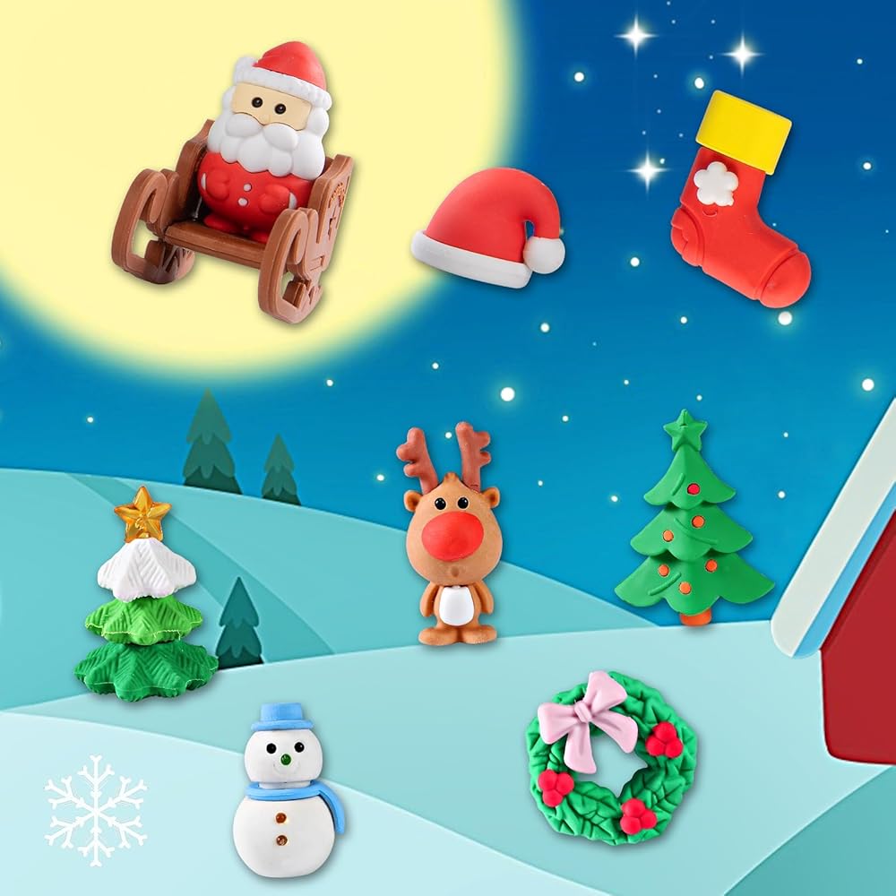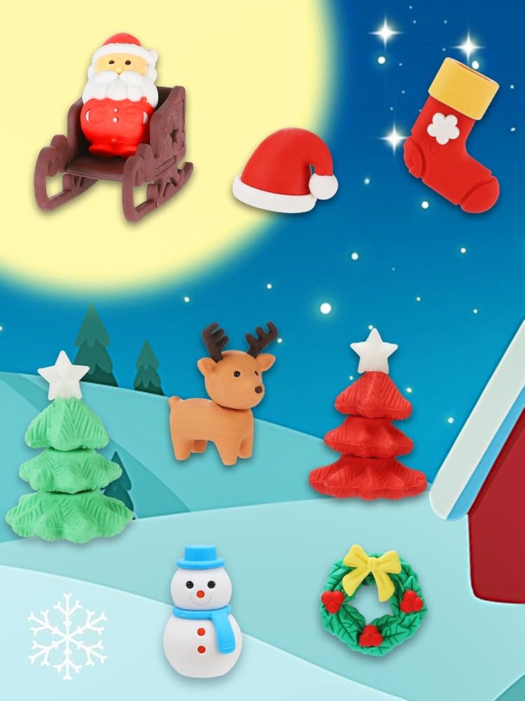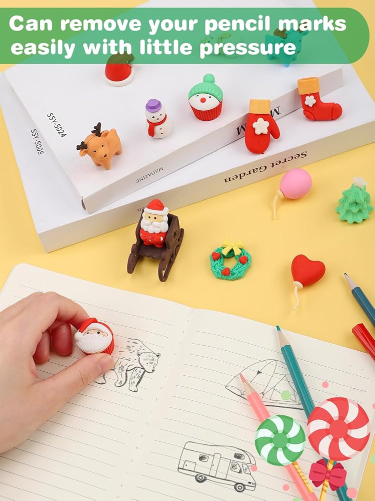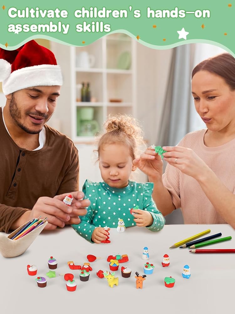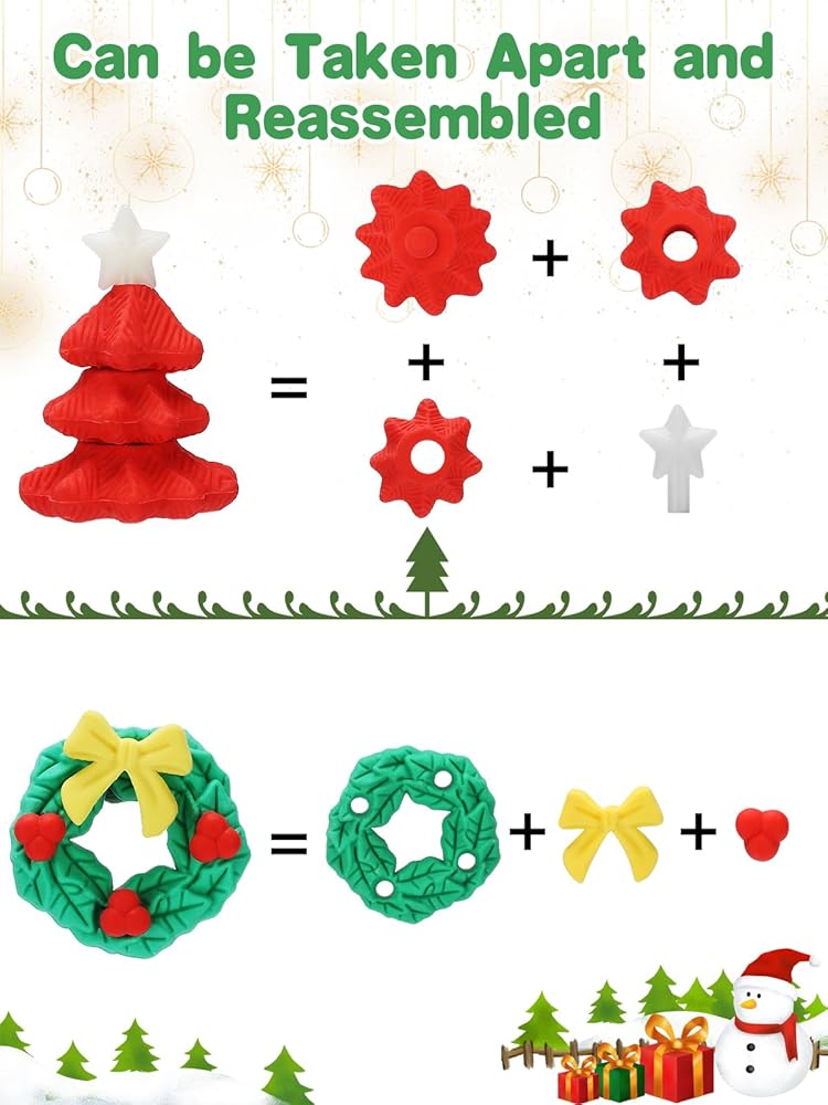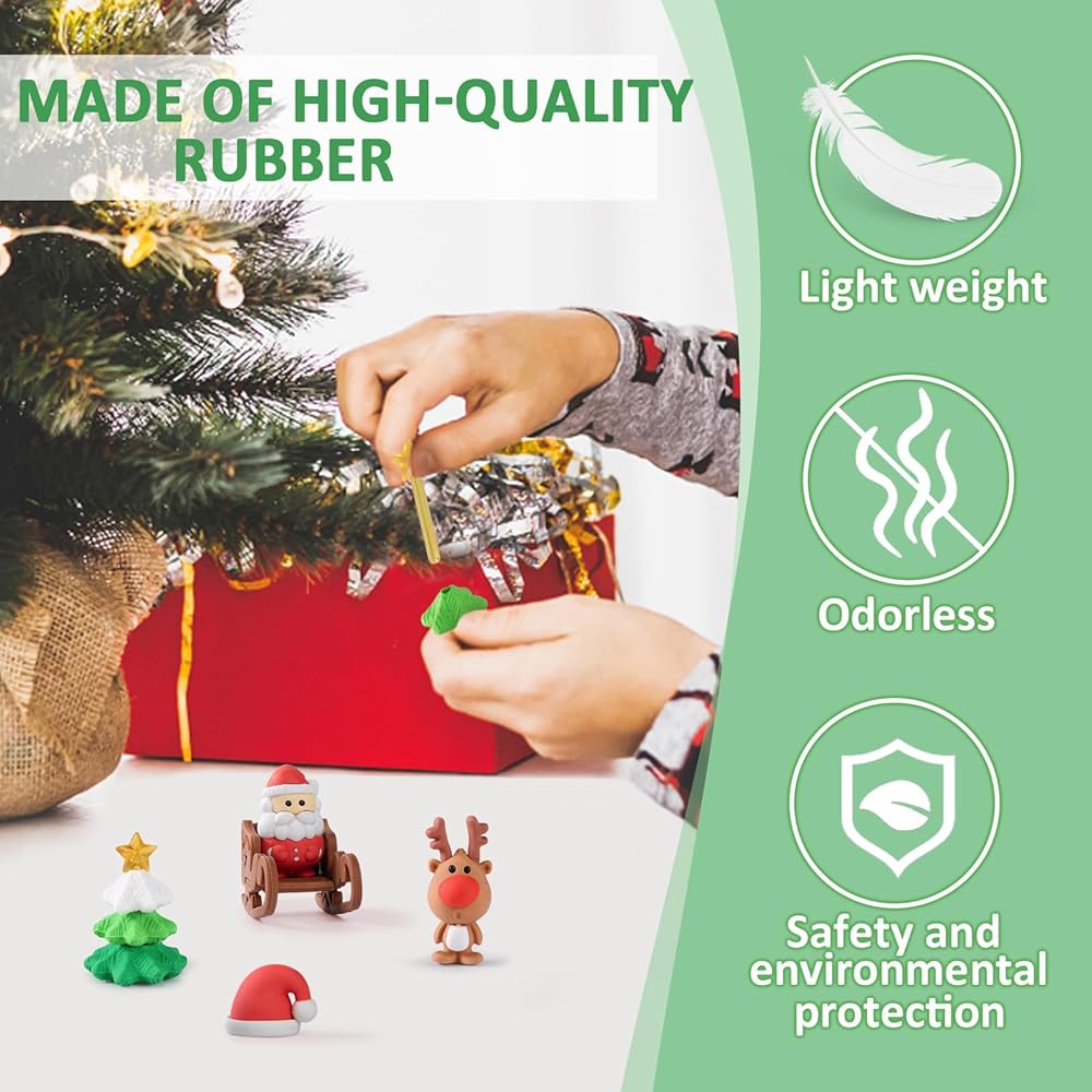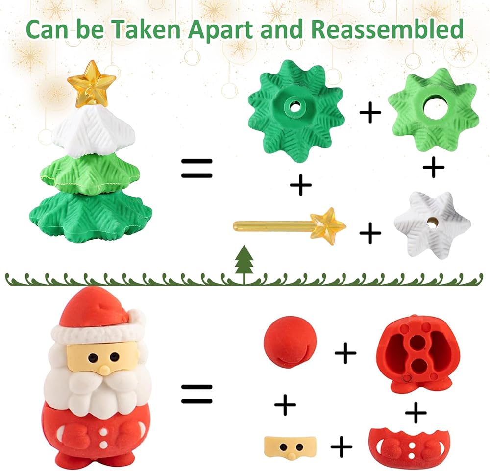 • هدية مثالية: مع شجرة عيد الميلاد المجمعة بحرية، وإكليل الزهور والنقع، وسانتا كلوز، ورجل الثلج، والأيائل وغيرها من ممحاة أنماط عيد الميلاد، ستكون ممحاة أقلام أحجية عيد الميلاد المكونة من 32 قطعة هدية مثالية لعيد الميلاد للطلاب والأطفال (3 سنوات فما فوق) الاستخدام واللعب وتحسين القدرة العملية.
