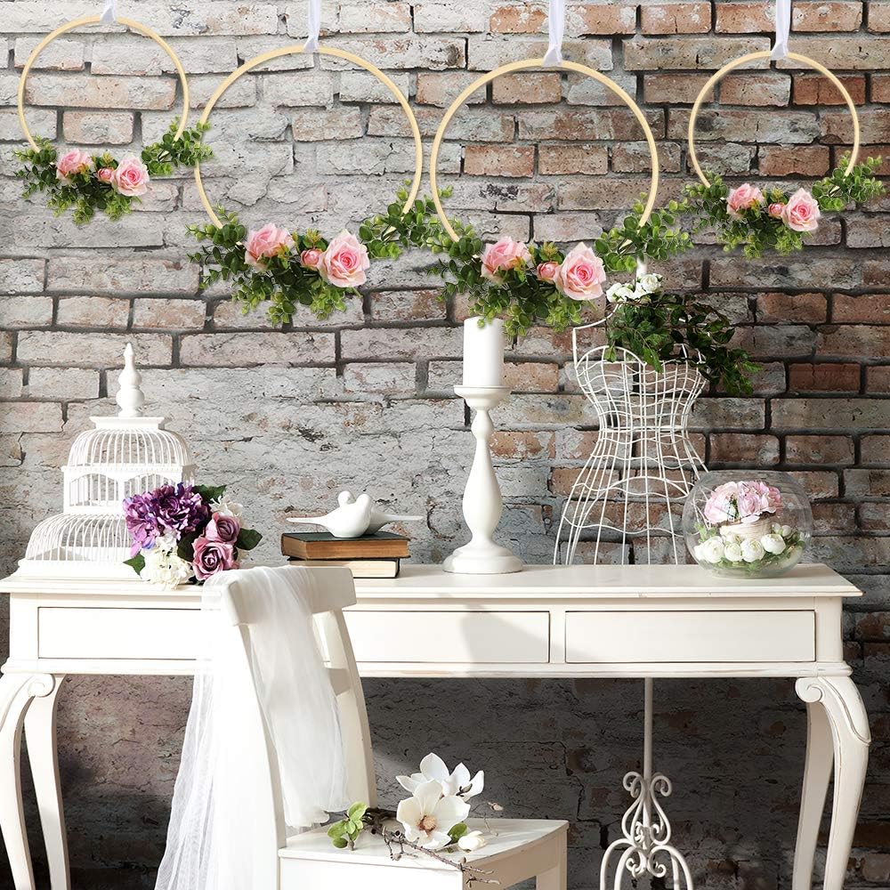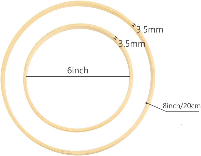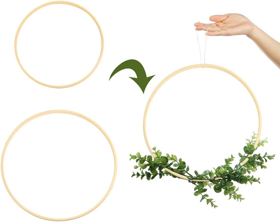 مجموعة أطواق الزهور: معبأة مع 12 حلقة من الخيزران بمقاسين، كل مقاس يحتوي على 6 قطع، رائعة لصنع إكليل زهور جميل، أو تصميمات إكليل الزفاف، أو تعليق حائط مكرامية أو صائد الأحلام بنفسك.