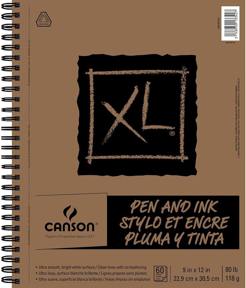 يعد قلم وحبر Canson XL Series عبارة عن ورق أبيض ساطع فائق النعومة يمنح الفنان خطوطًا نظيفة وواضحة بدون ريش. إنه مثالي للاستخدام مع أقلام اللباد والجل وأقلام الحبر الجاف، كما أنه مثالي لكل من الأحبار الصبغية والصبغية. تحتوي كل وسادة على 60 ورقة بوزن 80 رطل/118 جرامًا للمتر المربع.
