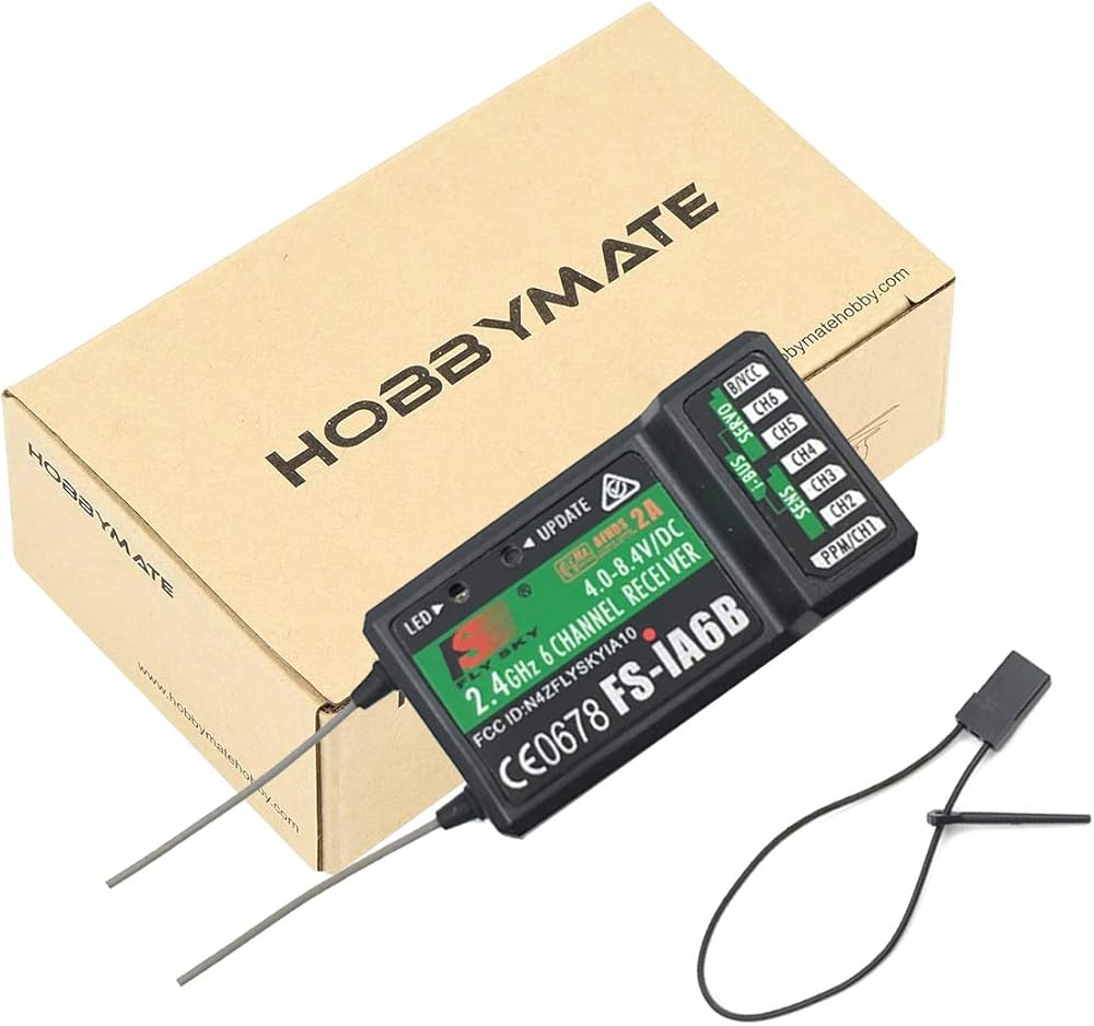 جهاز استقبال اف ال سي FS-iA6B من فلايسكي، جهاز استقبال 2.4 جيجا 6 قنوات اي باص بي ام متوافق مع جهاز التحكم عن بعد لجهاز الإرسال اللاسلكي فلايسكي FS-i6X / FS-i4 / FS-i6 / FS-i10