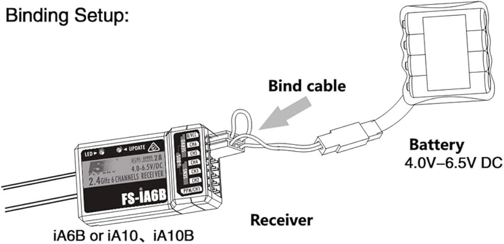 جهاز استقبال اف ال سي FS-iA6B من فلايسكي، جهاز استقبال 2.4G 6 قنوات اي-باص بي ام متوافق مع جهاز التحكم عن بعد لجهاز الإرسال اللاسلكي فلايسكي FS-i6X / FS-i4 / FS-i6 / FS-i10