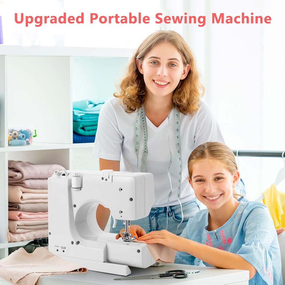 ☀ ماكينة خياطة صغيرة: ماكينة خياطة صغيرة مع مجموعة خياطة، تتضمن ضوء LED، قاطع خيوط، درج، مع مفتاح قدم ومفتاح زر ضغط. خفيفة الوزن وقابلة للحمل، مصممة للمبتدئين في ماكينة الخياطة، ويمكن تحريكها بسهولة وفقًا لاحتياجاتك، دون بذل جهد للحمل ~