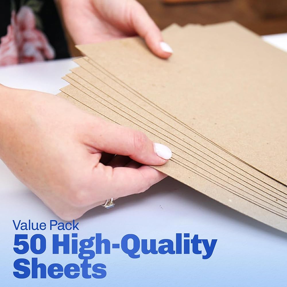 Our brown kraft paper sheets are the blank canvas to unleash your artistic potential, the only limit is your imagination! Easy to cut and shape, they transform ordinary projects into extraordinary art. Whether shipping or relocating, the unparalleled strength of our craft chipboard sheets shields your masterpieces and personal documents, ensuring your precious items reach their destination in pristine condition. This pack of 100 sheets is ideal for artists, crafters, and hobbyists to explore their creativity. Sturdy & Durable Chipboard Crafted from high-quality brown kraft cardboard, this 22-point chipboard album offers strong support. Lightweight yet sturdy, they're suitable for long-lasting picture frame backing, bookbinding, packaging, papercrafts, and more. You can stack and transport them easily without deformation or damage. Multipurpose Paper Sheets With these multi-purpose chipboard sheets, the DIY possibilities are endless. From scrapbooking and home decor to professional packaging, they provide a reliable foundation and set your projects apart from the rest. Easily turn ordinary projects into extraordinary masterpieces!
