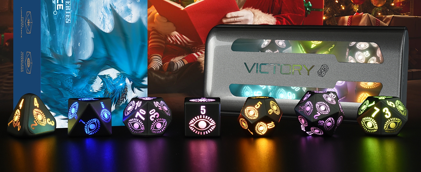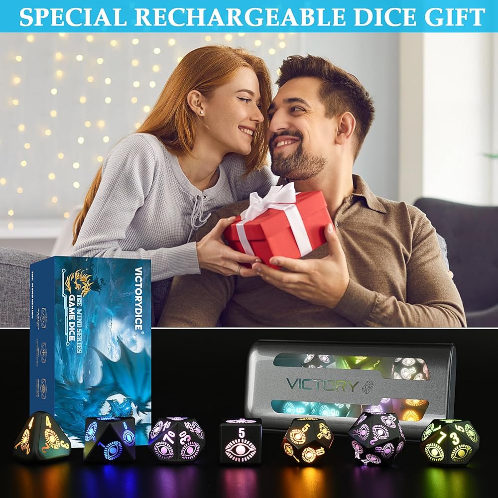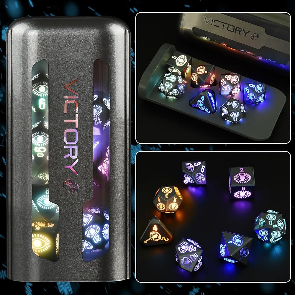 مجموعة نرد DND LED قابلة لإعادة الشحن من LOOKDNDS مع صندوق شحن - نرد LED، نرد مضيء مقاوم للماء، 7 قطع من النرد الإلكتروني المتوهج والزنزانات والتنينات - مجموعة D&D متعددة السطوح للعبة طاولة آر بي جي