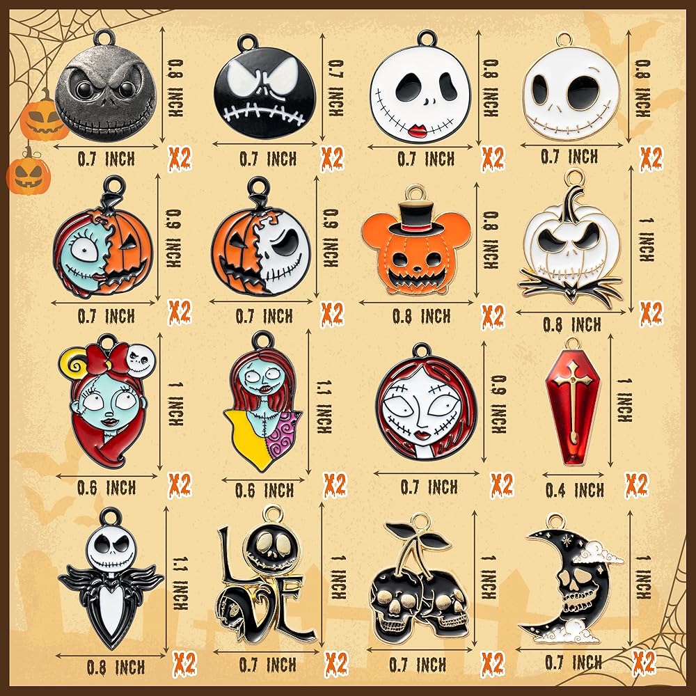 • Nightmare Before Christmas Charms - You will get 32pcs Halloween horror enamel charms in 16 styles (Each Style 2pcs). Full of horror atmosphere, these scary charms are great for various party outfits, such as Halloween, Christmas, horror movie game-themed parties, birthdays, dress-up parties, etc.