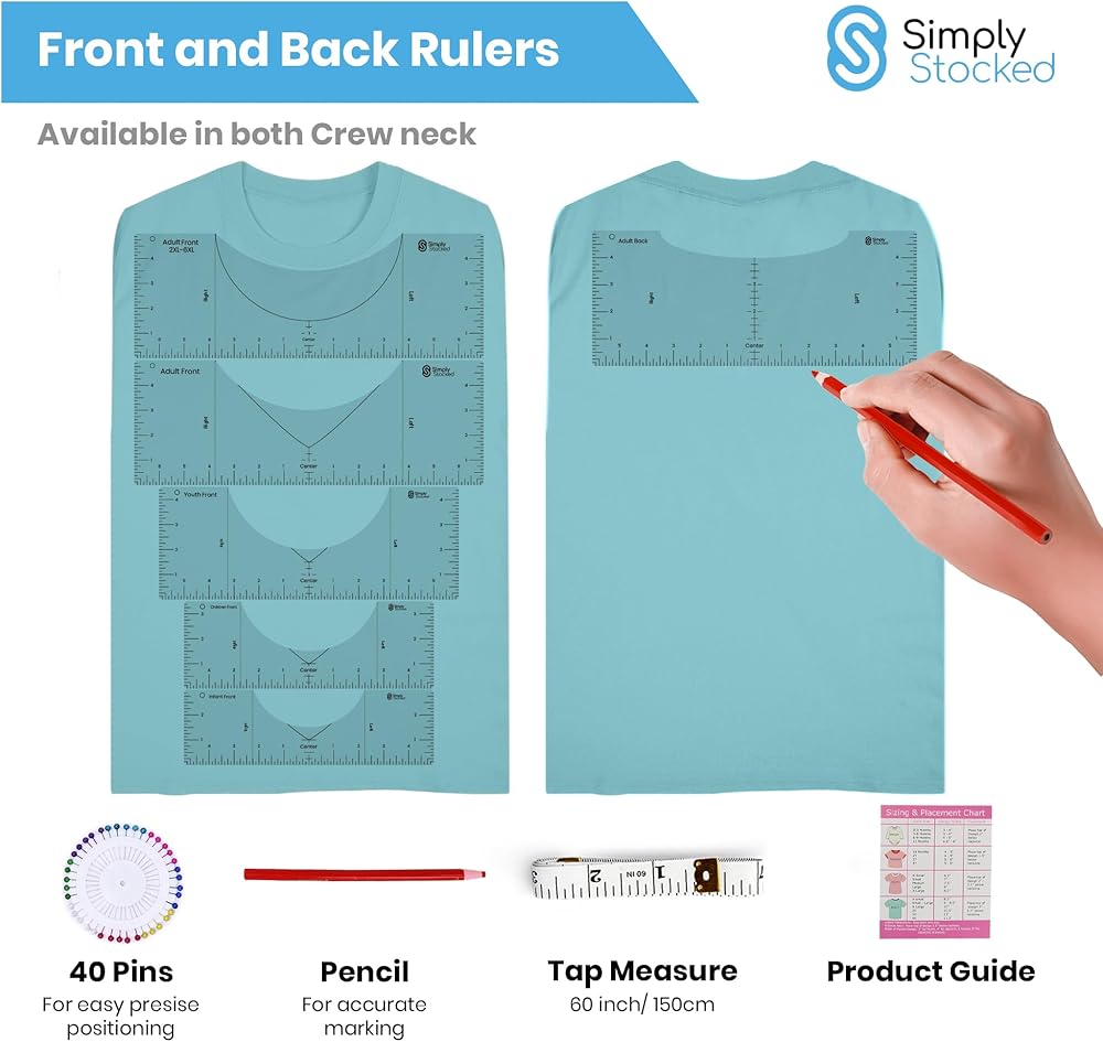 👕 [أداة محاذاة القمصان]: صمم قمصانك باستخدام المسطرة الشفافة الطويلة وحقق بسهولة محاذاة مثالية وتصميمات مركزة جيدًا! استخدم مجموعة متنوعة من فتحات العنق لتجد لقميصك تطابقًا مثاليًا يوفر الوقت ويجعل التصميم يبدو سهلاً.