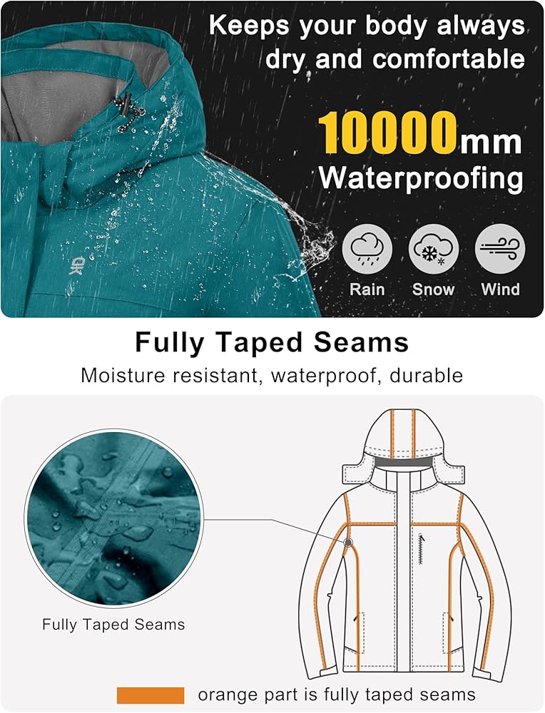 • مقاومة للماء: يصل مؤشر العزل المائي إلى 3000 مم/H2O. نسيج مقاوم للماء بالإضافة إلى طبقات حرجة محكمة الغلق، لن تقلق بشأن البلل أثناء التزلج أو التزلج على الجليد أو في الأيام الممطرة