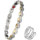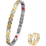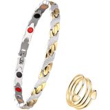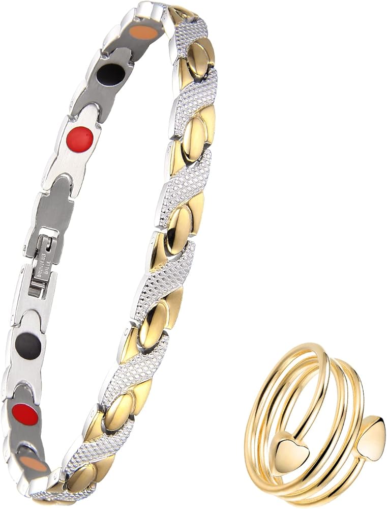 [أساور وخواتم مغناطيسية] - يحتوي السوار والخاتم المغناطيسي العلاجي للنساء على 3500 مغناطيس أرضي نادر غاوس، مما يساعد على تقليل التعب وتخفيف التهاب المفاصل وتعزيز التصريف اللمفاوي والدورة الدموية وتوازن النوم.