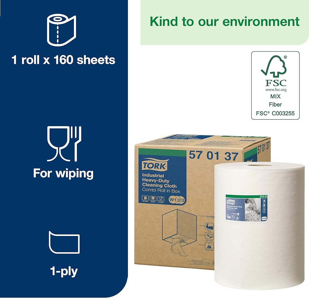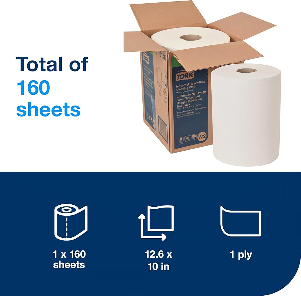 قطعة قماش تنظيف مركزية للخدمة الشاقة من Tork باللون الأبيض W1: تم تصميم أقمشة التنظيف الثقيلة Tork الصناعية عالية التحمل من حيث التكلفة لحماية الأيدي من الحرارة والقصاصات المعدنية. إنها توفر قوة فائقة للعمل مع معظم المذيبات والمطهرات والمنظفات. إنه القماش الصناعي للتنظيف القوي وإزالة الشحوم وإزالة البقع العنيدة. يمكن استخدام مناشفنا الناعمة بشكل متكرر، لتحل محل المناشف والخرق المستأجرة.
