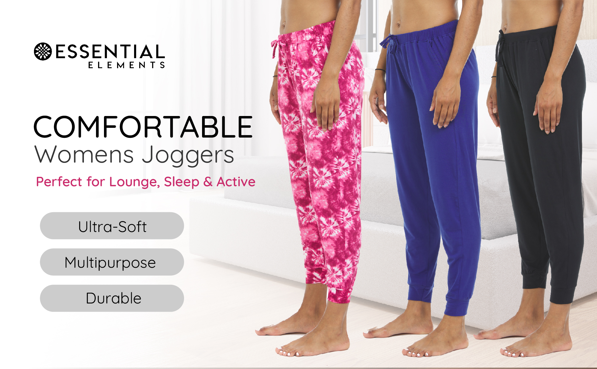 بنطال رياضي مريح للنساء - مصنوع من 92% بوليستر فائق النعومة ومطاط وخفيف الوزن و8% إيلاستين مصمم لتوفير أقصى درجات الراحة والمتانة.