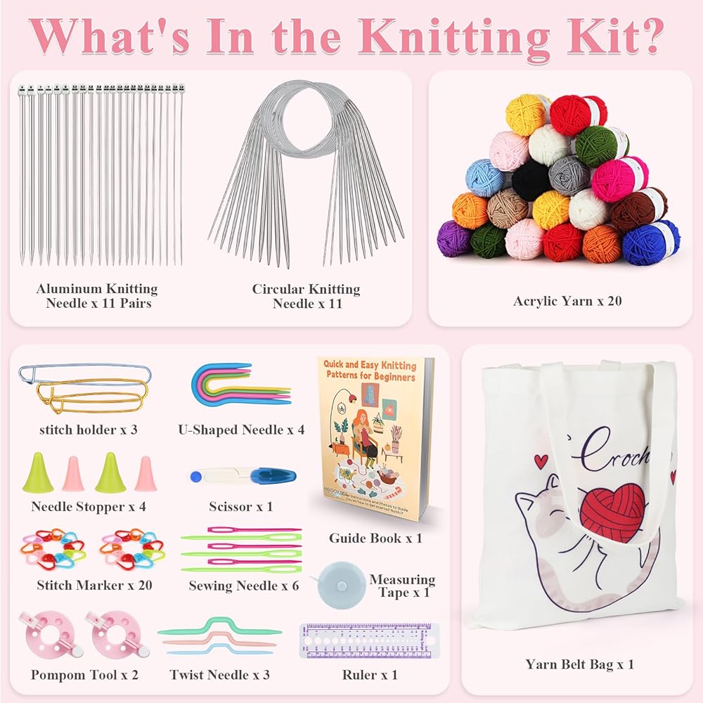 مجموعة حياكة Aelelike للمبتدئين ، 88 جهاز كمبيوتر مجموعة من الحياكة الكاملة مجموعة الحياكة بما في ذلك yarns rektting eletles تعيين تعليمات مفصلة ، تعلم مجموعة الحياكة ، هدية مثالية