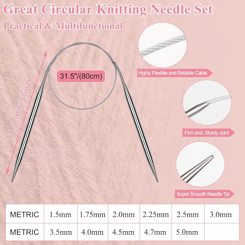 مجموعة إبر مريحة من الفولاذ المقاوم للصدأ مدببة واحدة: تتضمن مجموعة الحياكة جميع المقاسات الشائعة 2.0/2.5/3.0/3.5/4.0/4.5/5.0/5.5/6.0/7.0/8.0 مم، إبر الحياكة المعدنية الفضية هذه هي نقاط مثالية، لا تشوبها شائبة مدببة ومثالية لجميع الخيوط وكل مشروع؛ هذه الإبر هي المفضلة لدى العديد من الحياكة.