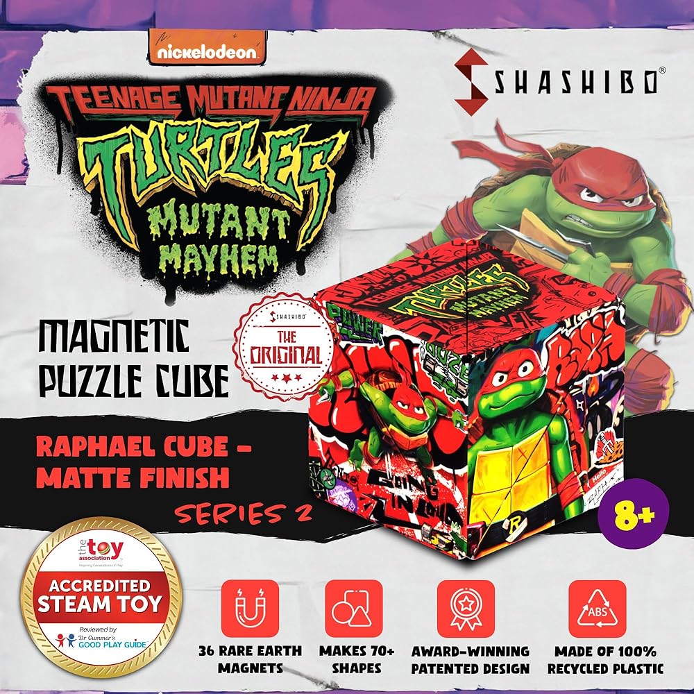 • 🧩 مصمم لتوفير الراحة - شاشيبو تعني الجودة الحائزة على جوائز. التصميم المبتكر لمكعب الألغاز يناسب اليد بلطف لساعات من المرح الذي يتحدى العقل! إنه مصنوع من بلاستيك قالب الحقن الفاخر، و36 مغناطيسًا أرضيًا نادرًا، وسطحًا غير لامع مقاوم للتمزق. مغطاة بالعديد من الأنماط الفنية لسلاحف النينجا والأعمال الفنية الساحرة، لقصة TMNT خاصة في أكثر من 70 شكلاً.