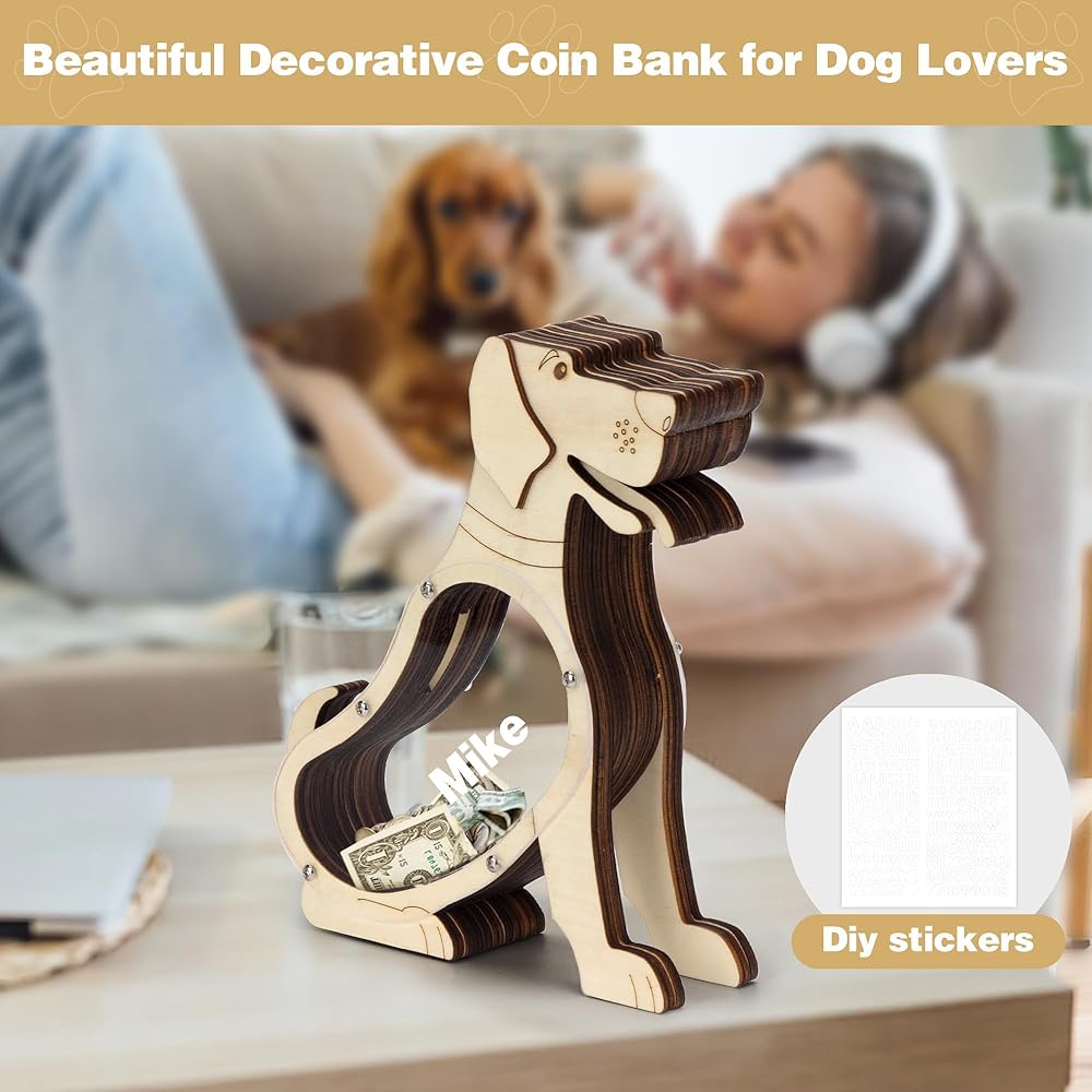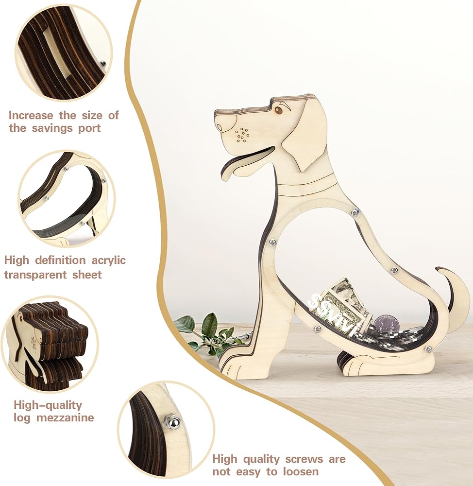 👉4. Unique Gift - Wooden piggy bank is perfect dog lover gift for children and adults, whether it's baby shower,birthday parties, Christmas gifts, holidays, graduation ceremonies, or just because of this. It will definitely bring a smile.