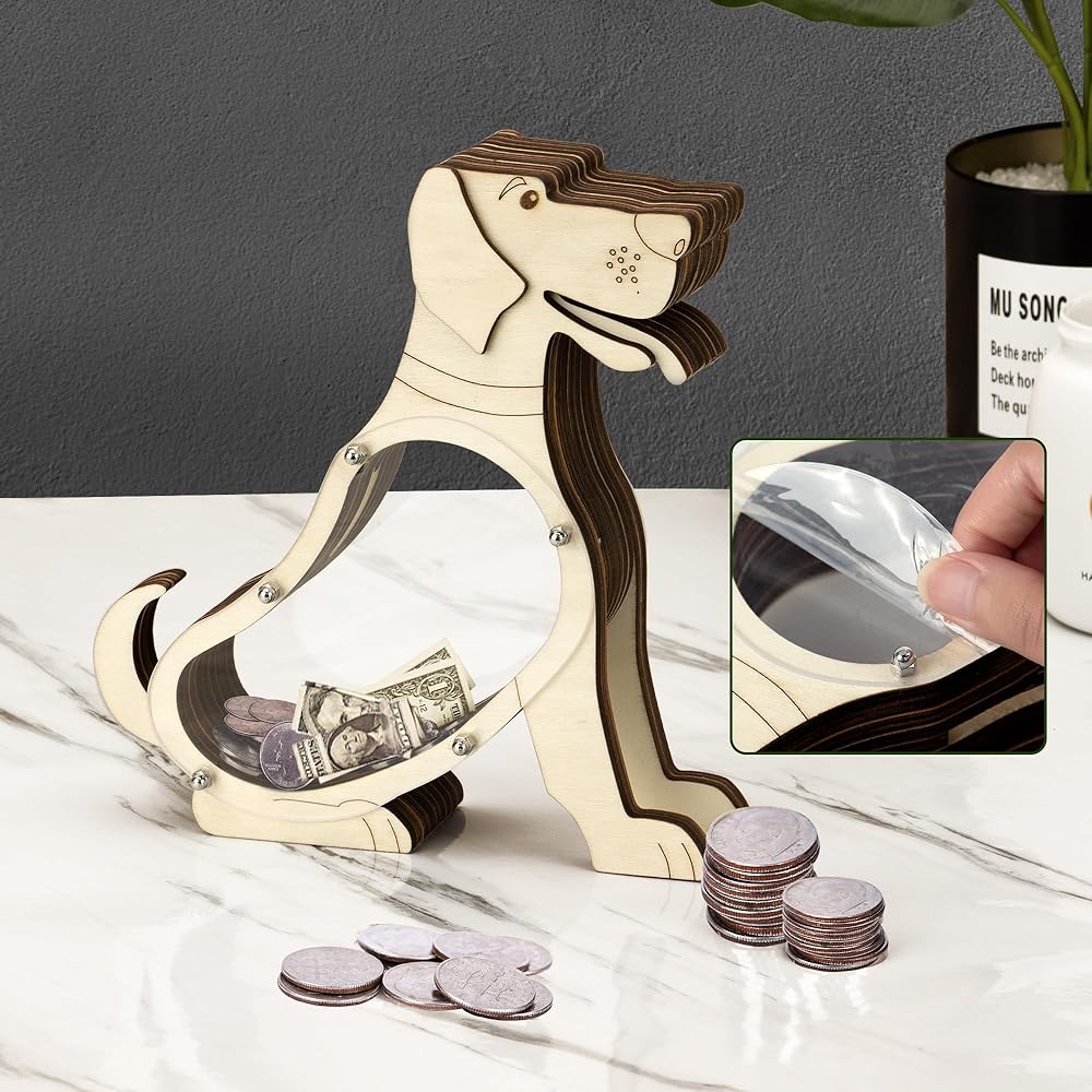👉3. Quality Materials - Sculpted from natural solid plywood and finished smoothly, this bank is made of quality durable materials built to last for years of use. The Dog belly uses a highly transparent acrylic plate, watching your savings accumulate in the transparent belly.
