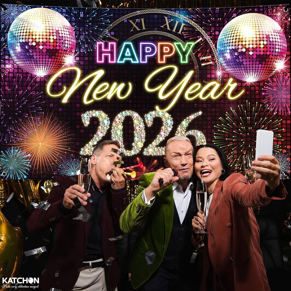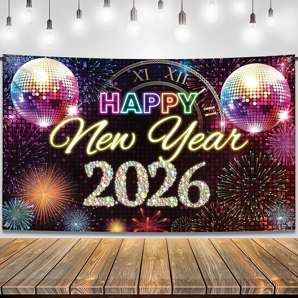 هل تريد الاحتفال بالعام الجديد بطريقة فاخرة؟ لافتة Happy New Year الأنيقة هذه مع عرض تأثير لامع متعدد الألوان هي بالضبط ما تبحث عنه.
