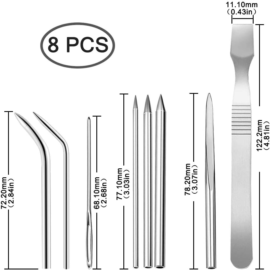 8 عبوات من إبر أربطة الحبل المظلي، مجموعة حياكة من الفولاذ المقاوم للصدأ Sonku مع أداة تنعيم لخيوط الأربطة، سوار الحبل المظلي والنسيج الجلدي، 8 مقاسات - فضي